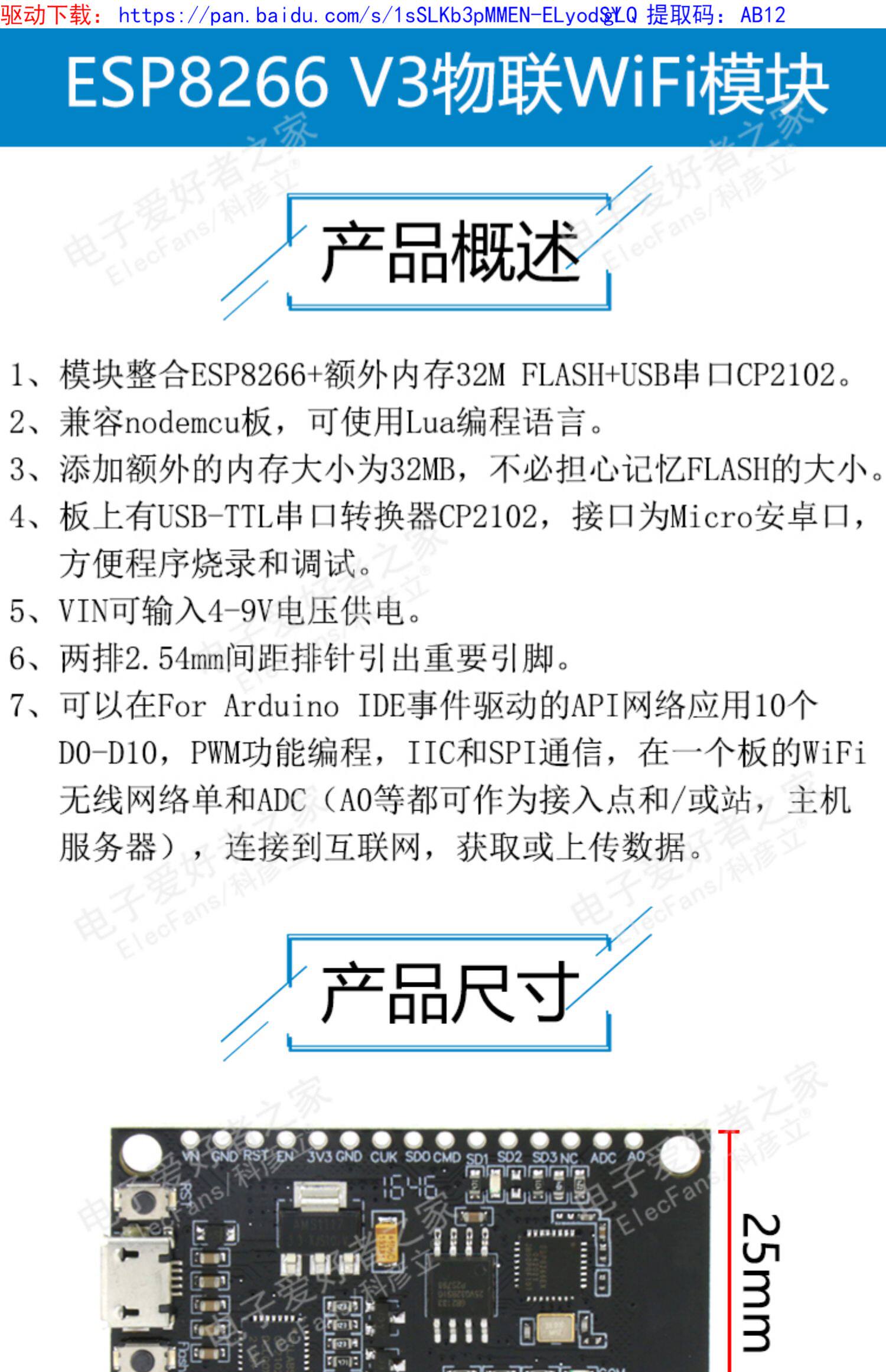 ESP8266 V3 Интернет вещей Wi -Fi Модуль CP2102 Серийный чип 32 МБ