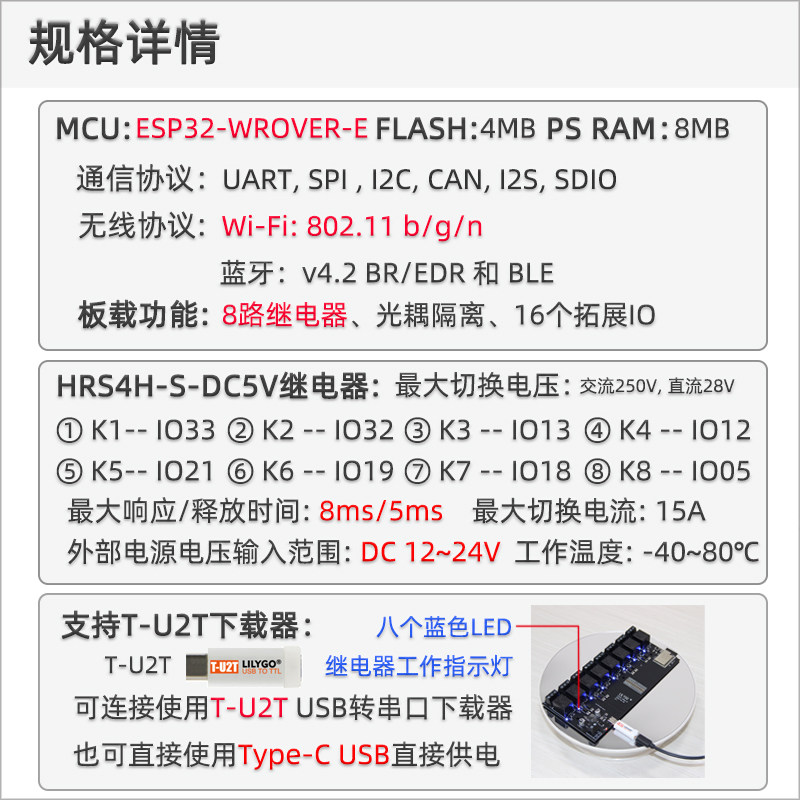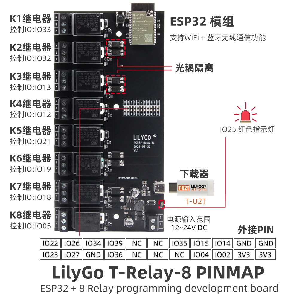 T-relay ESP32 восемь Road DC 5V Relayer Internet Relax
