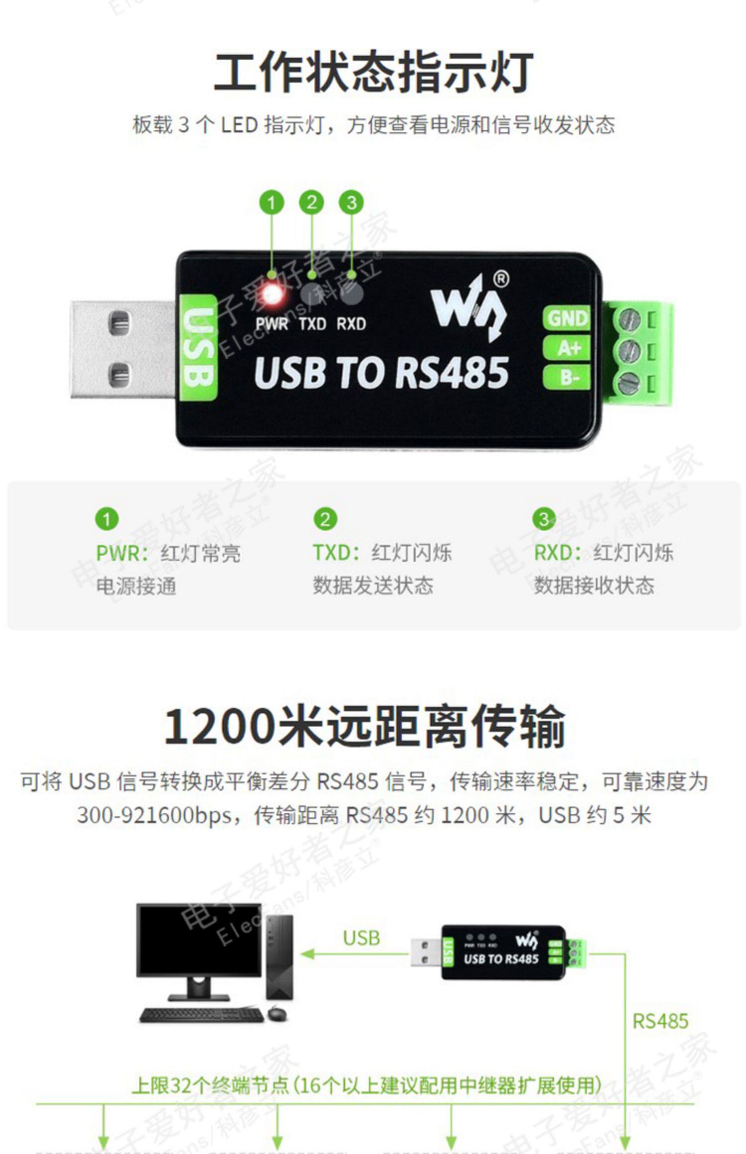 Промышленность -Объявление USB ROTOR RS485 Последовательное конверсионное модуль Устройства передачи FT232RL/CH343G Micro -Snow Electronics