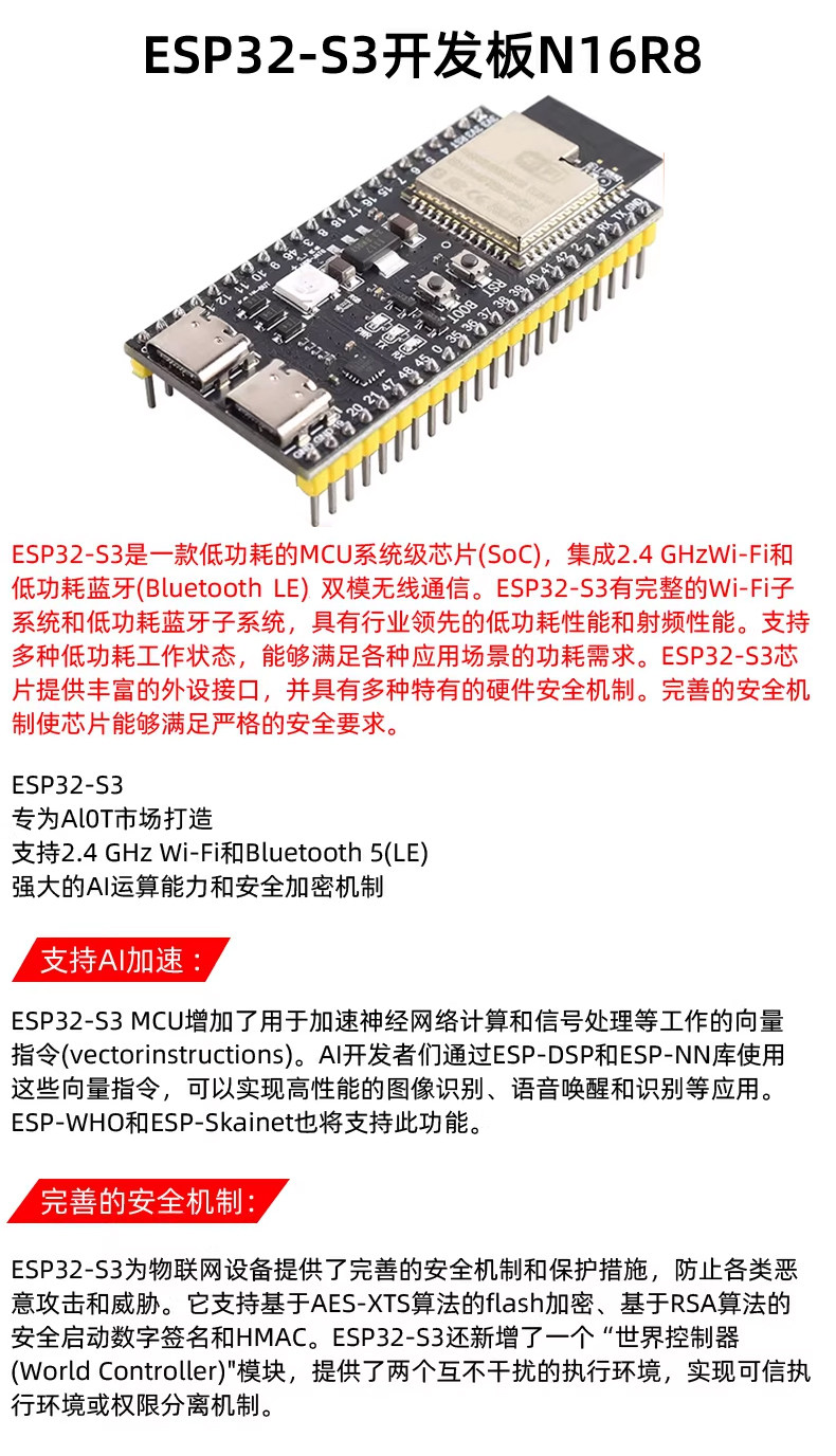 Плата разработки ESP32-S3-DevKitC-1 ai Xiaozhi N16R8 ESP32-C3/C6 Wi-Fi Bluetooth