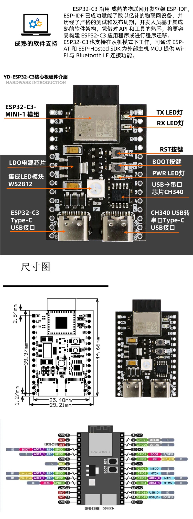 Канал передачи данных платы разработки с двумя портами ESP32-C3: