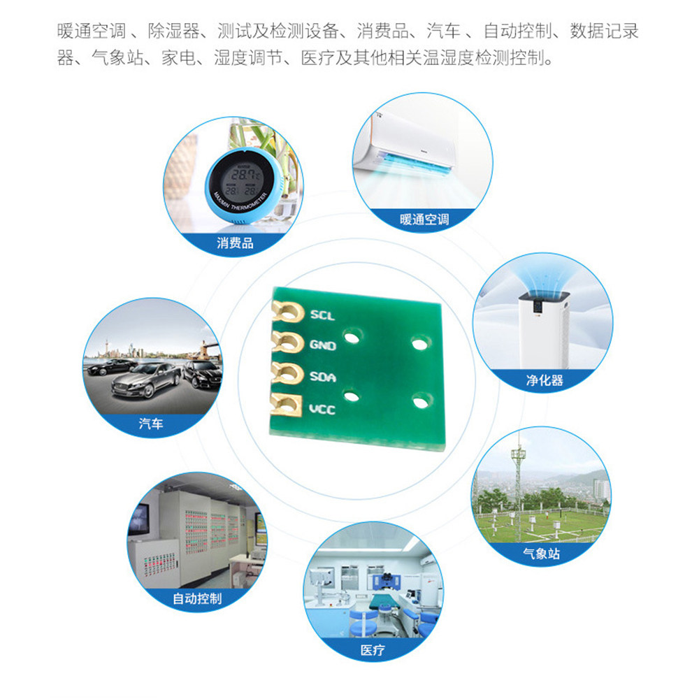 6. Широкий спектр применения: системы отопления, вентиляции и кондиционирования воздуха, осушители, испытательное и инспекционное оборудование, потребительские товары, автомобили, автоматическое управление, регистраторы данных, метеостанции, бытовая техника, регулирование влажности, медицинское и другое измерение и контроль температуры и влажности.