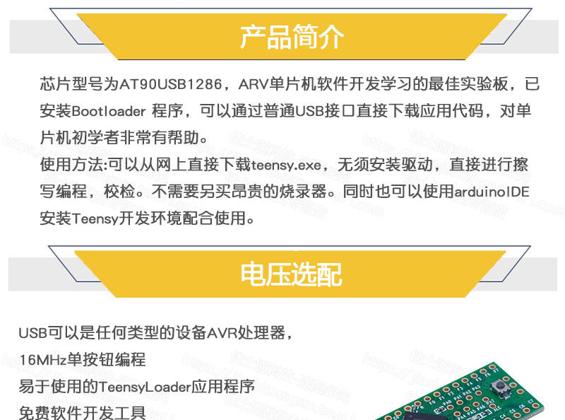 Модель чипа -AT90USB1286, лучшая экспериментальная плата для разработки и изучения программного обеспечения ARV с одним микрокомпьютерам. одной одноцелевой машины.