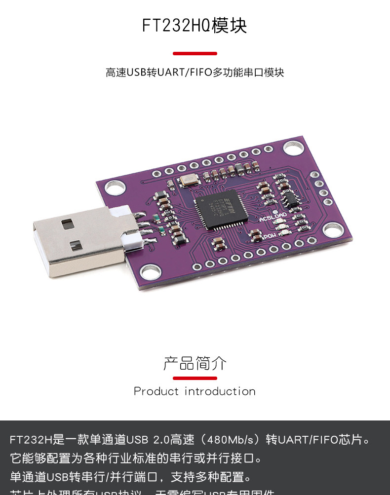 Jixin Electronics_FT232HQ высокоскоростной многофункциональный модуль последовательного порта USB-UART/FIFO