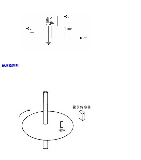 Схематическая схема скорости обнаружения датчиков зала выглядит следующим образом.Кусок магнитной стали вставлен на стороне не магнитного материала, а датчик зала фиксируется вблизи внешнего края диска.Каждый раз, когда диск поворачивается к кругу, датчик зала выводит импульс.Частота импульса может быть измерена путем измерения импульса с помощью однопроизводительного микрокомпьютера.