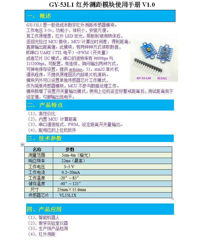 GY-53-L1X Инфракрасный модуль(VL53L1X + STM32)