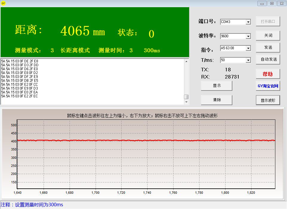Предоставьте программное обеспечение расстояния на дисплее ПК, подключение к модулю USB -TTL, данные просмотра компьютера.