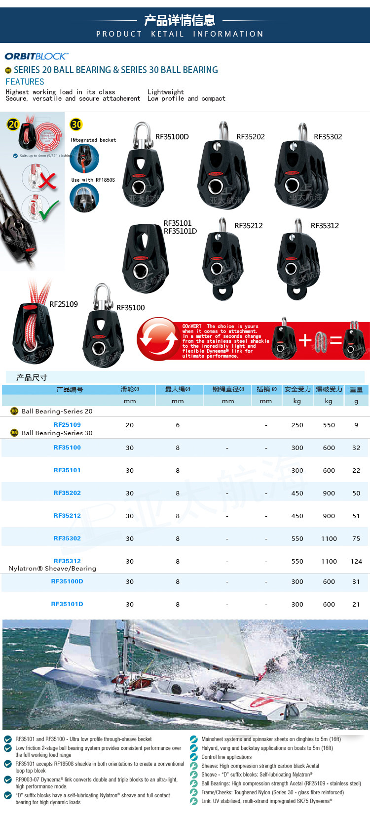 Ронстан импортировал парусное соревнование оборудование для оборудования для пластикового шкивов.