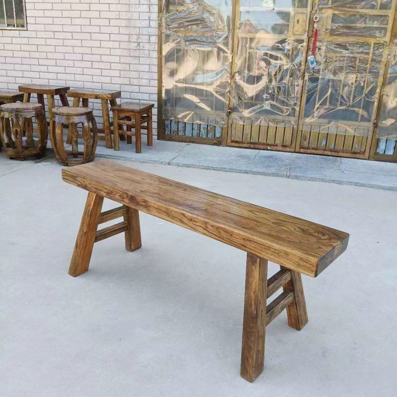 Старый вязаный деревян с твердым деревом -Теноналдаун представляет собой длинную скамейку естественный края прямой деревянного квадратного табурета