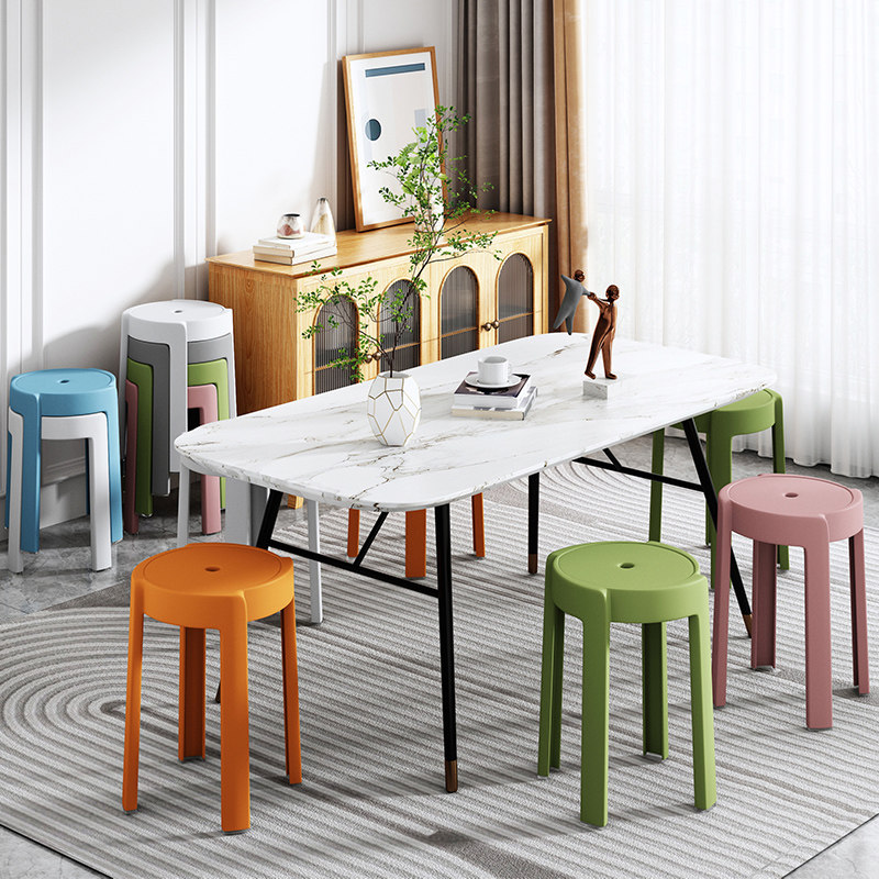 Пластиковый табурет сгущенным домашним резиновым креслом может сложить высокий стул сетка красный круглый стул Простой современный нордический обеденный стол скамей