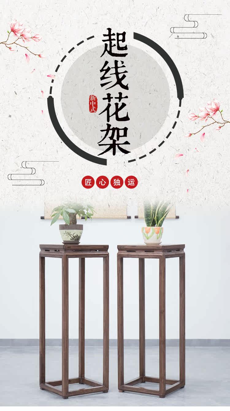 Новый китайский сплошной древесина ретро -кошелька Цветочная рама старый цветок вяза, несколько дзен для дизайна балкона