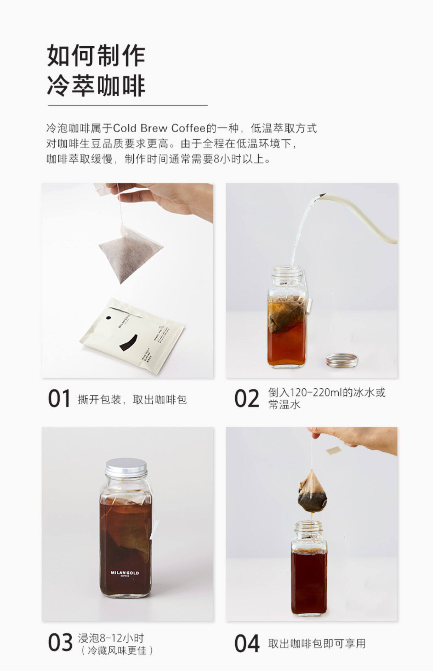 Золотая милан мешок кофе дикие фруктовые бокалы холодный экстракт пена свежее и умеренное выпечка холодного пузыря Pure Black Coffee Powder 10 упаковок