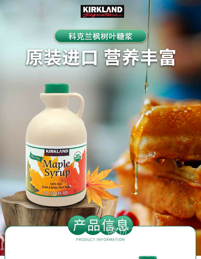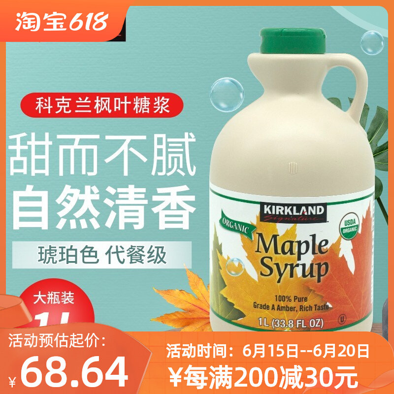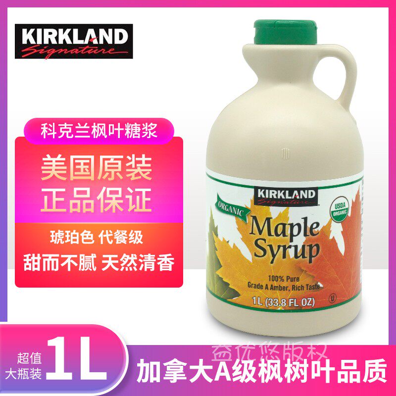 Costco Покупка Канада Киркленд чистый кленовый лист сироп 1l L Лиляция -десерт, выпекать, выпивать кленово -сахар