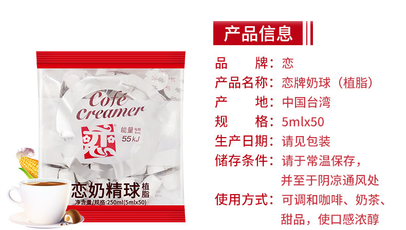 Тайваньская любовь бренд бренд крем -кофейный партнер кофейный партнер Love Liquid Fresh Milk Fine Ball 5mlx50 зерно*2 сумка 100 зерна гладкие