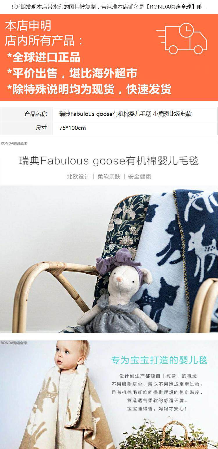 Шведский сказочный Goose Royal Royal Organic Cotton Baby Babe Classic Deer Catio 75*1M