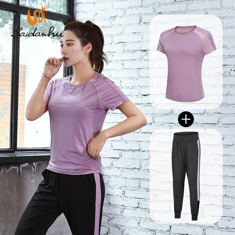 赛丹狐 Спортивный комплект для спортзала, футболка с коротким рукавом, штаны для йоги, облегающий крой