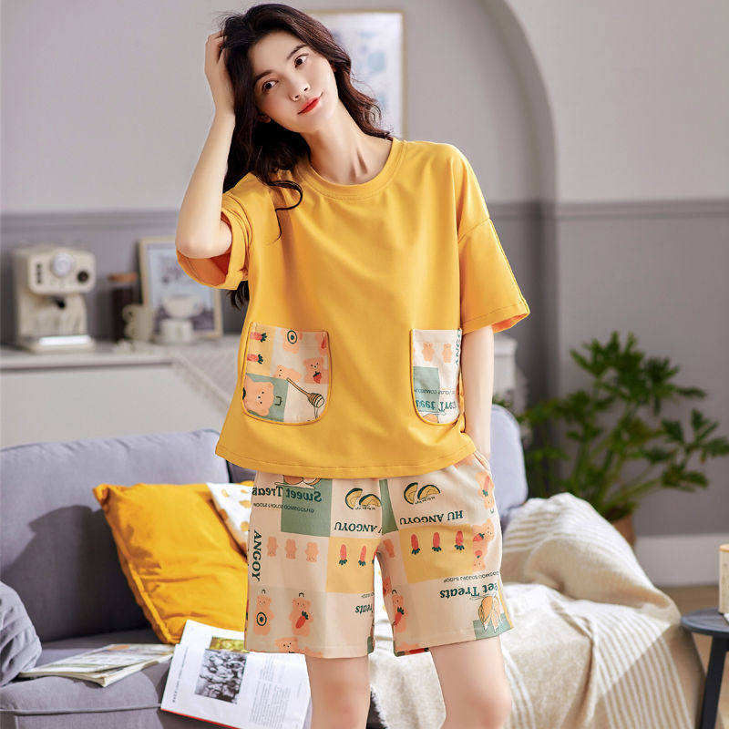 Летняя тонкая пижама, мультяшный милый комплект, короткий рукав, в корейском стиле