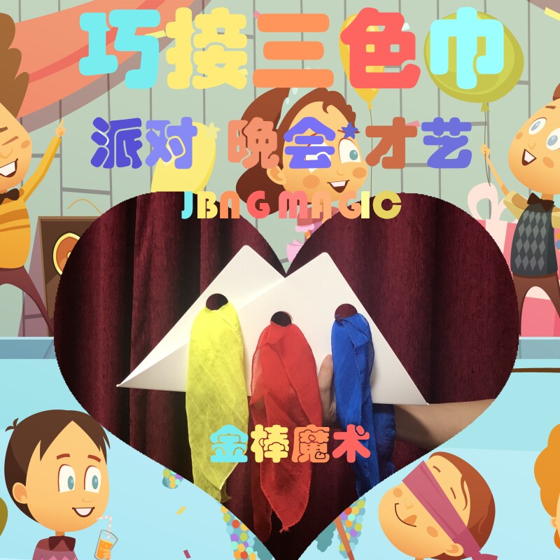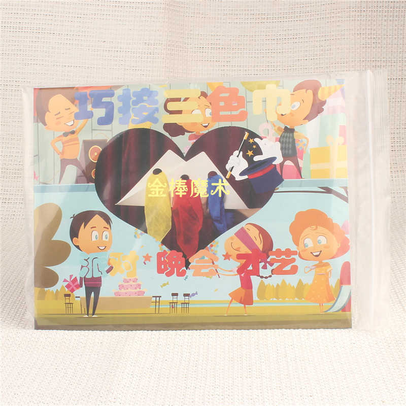 Реквизит включает в себя: 2 белых карт, три цвета шелкового шарфа (случайный цвет).