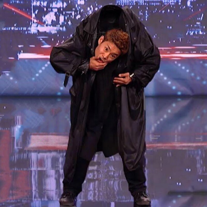 Человеческая голова сдвигает и отбрасывая головы механического танцевального магического реквизита.