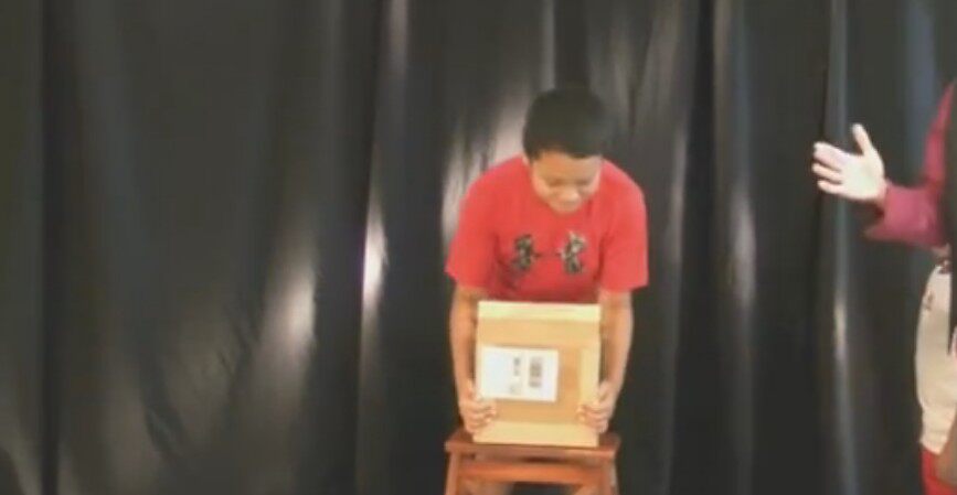 [一个空箱子让2名观众分别拿起来 一名观众很轻松的就可以拿起来而另外一名观众怎么也拿不动 哈哈 超搞笑 喜欢舞台互动的朋友还等什么 赶快拍下学习吧]