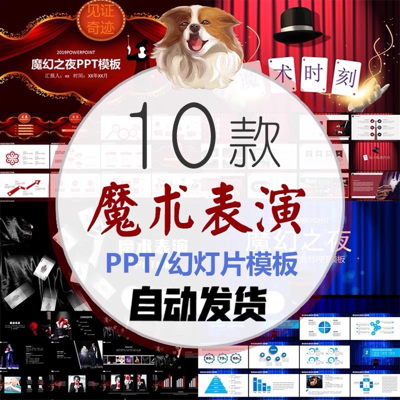 Магическая спектакль PPT Шаблон Magic Night Party Программа высокий магический материал Динамический сцену сцены сцены