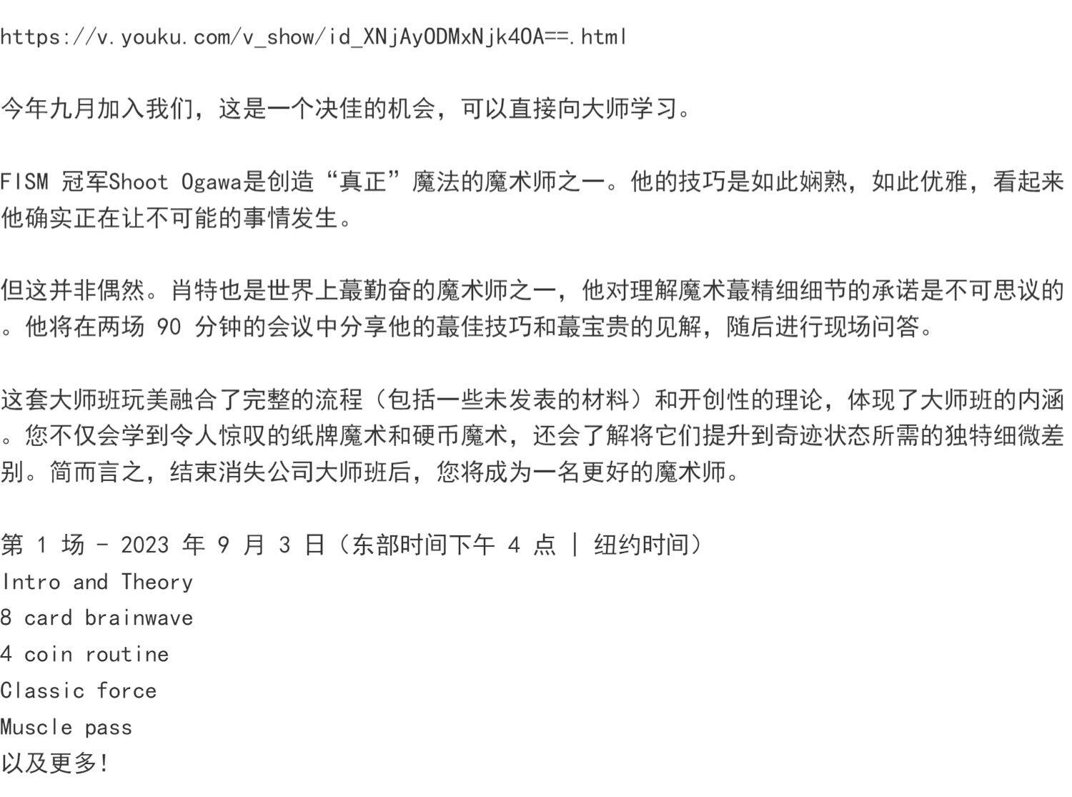 2023 Волшебник Учите китайскую лекцию Masterclass Live By Shoot Ogawa 1