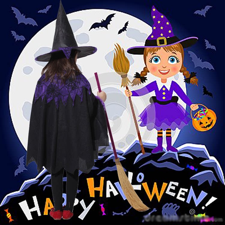 • Маленькая плащ для ведьм+шляпа -шляпа+тканевая сумка+подметание