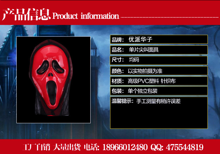 Meng Po Mask Ghost Ghost Ghost Face Сделайте забавную и забавную веселую сингл фильма «Дьявол лицо кричать маска»