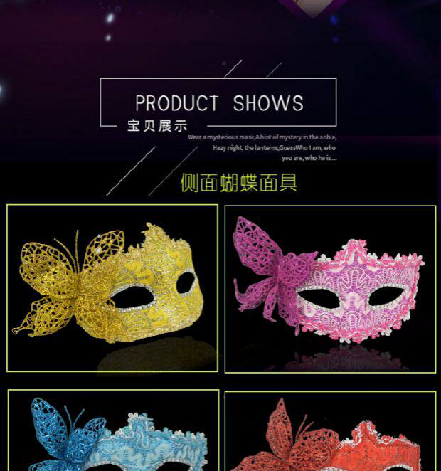| Цвет: | Синяя кожаная маска бабочек, Кожаная маска из красной бабочки, Кожаная маска из красной бабочки, Желтая кожаная маска бабочки, Кожаная маска из белой бабочки, Синяя левая кожаная маска лилии, Красная левая кожаная маска с левой стороны, Красная левая кожаная маска лилии, Фиолетовая левая кожаная маска лилия |