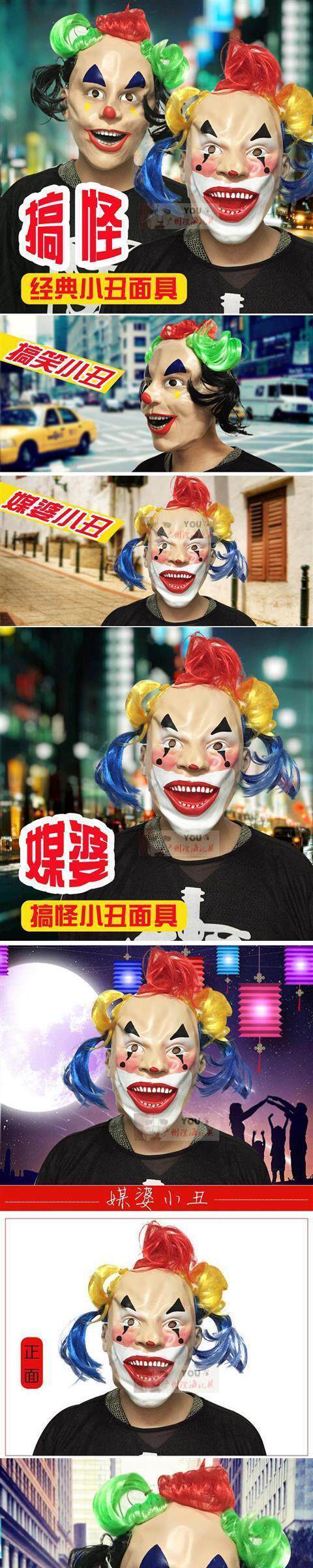 Хэллоуинский фильм макияж макияж макияж исполнение Clown MediaD Mo Kou LaTex Смешное лицо призрака клоун маска