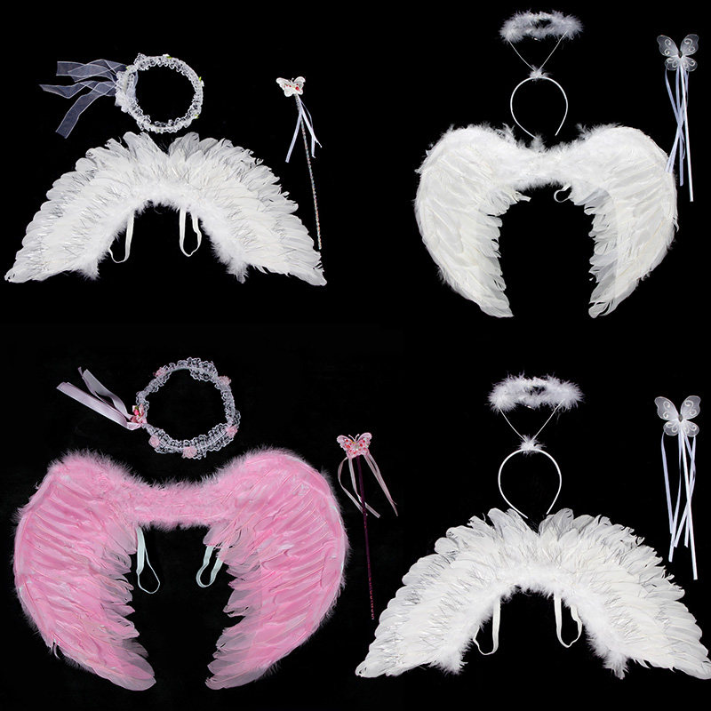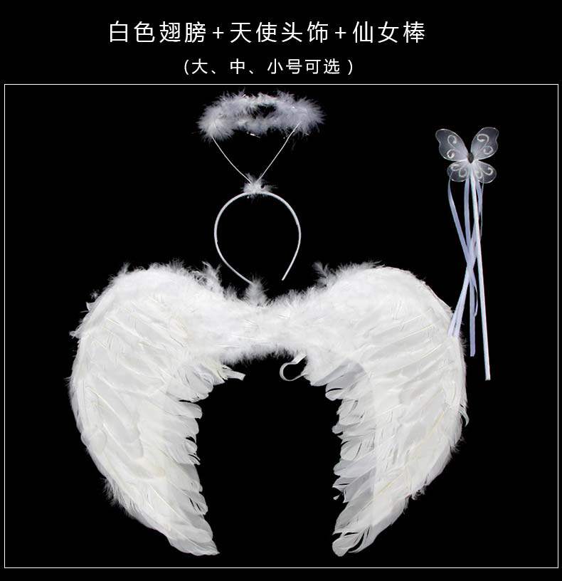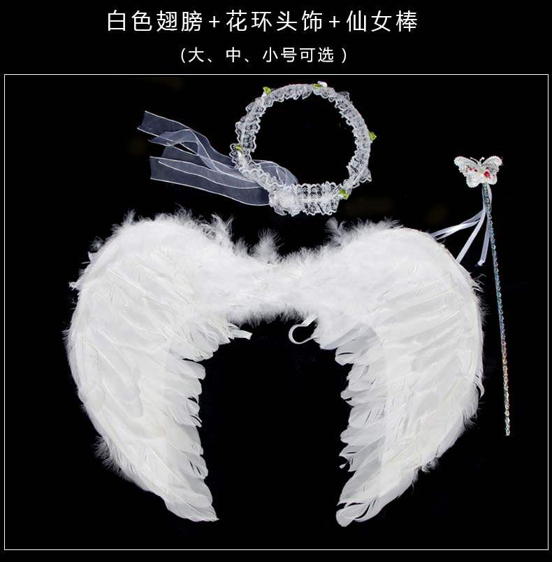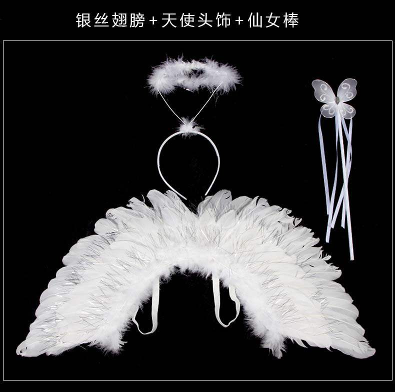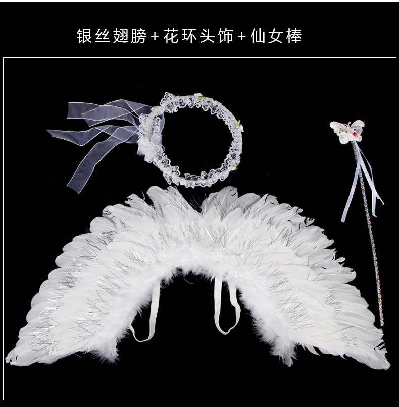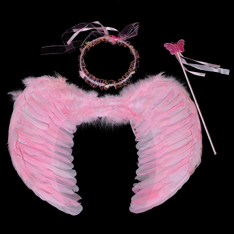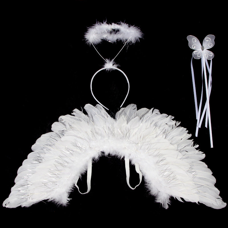 Детские белые крылья ангела, комплект, наряжаться, косплей, 3 предмета
