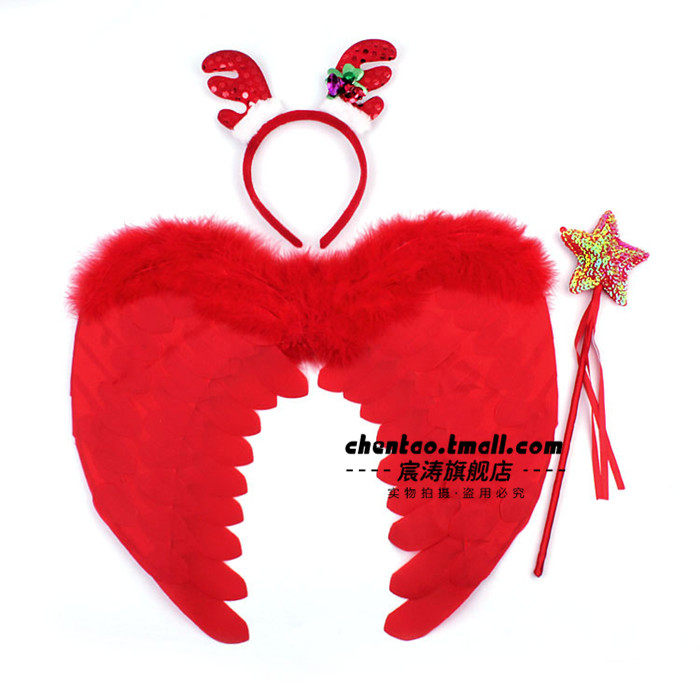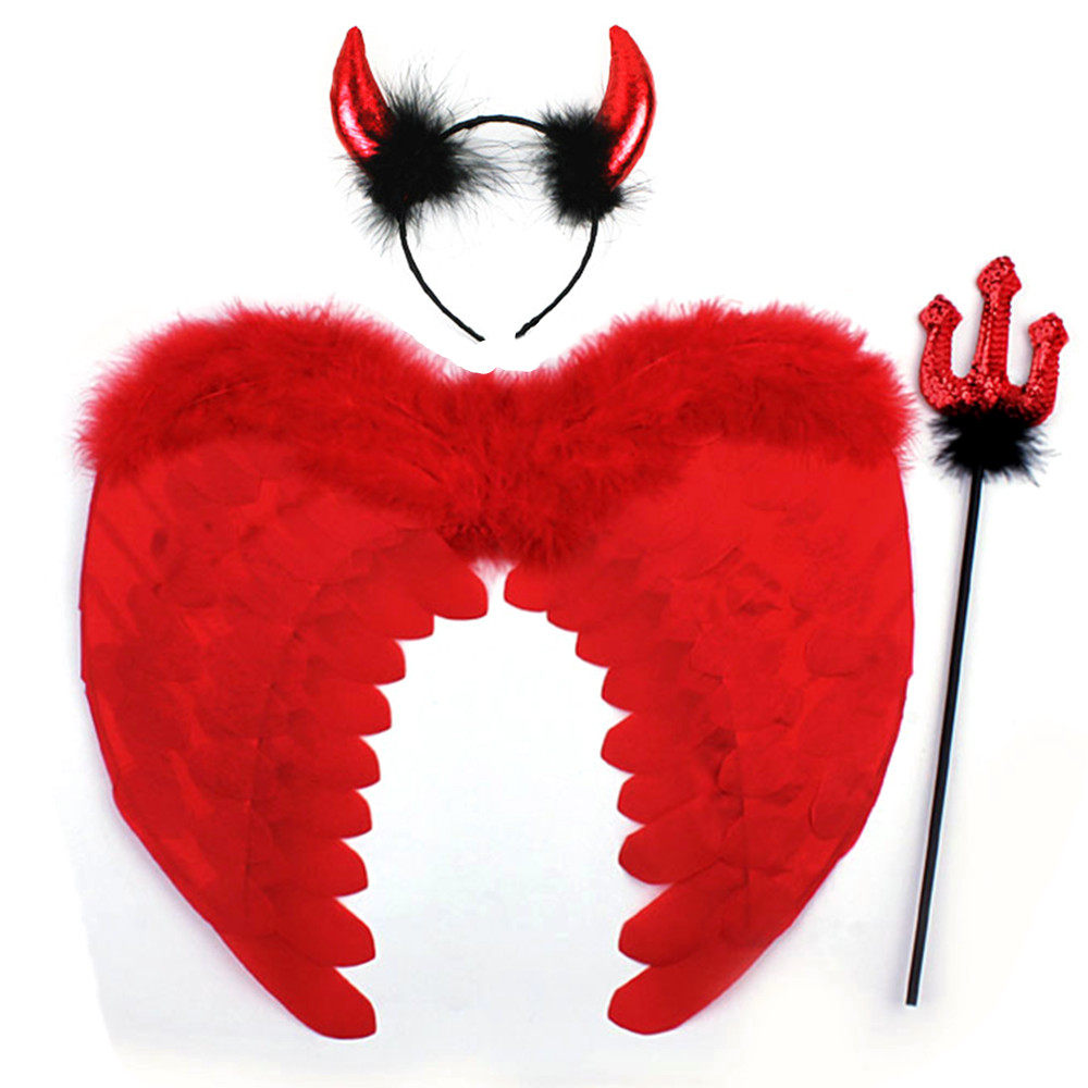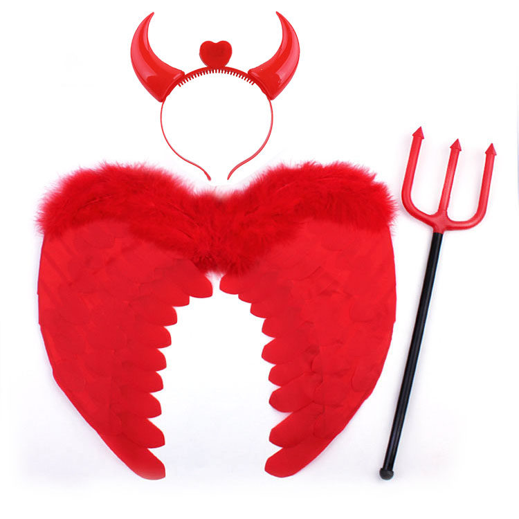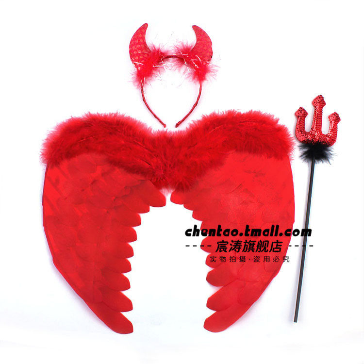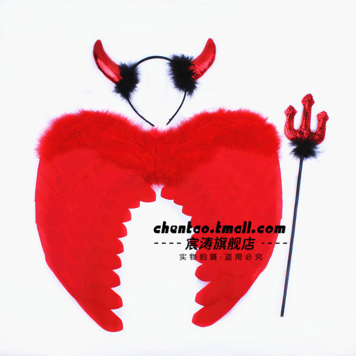 宸涛 Хэллоуин заправки перья крылышки демон красные перья крылышки+рога+корова вилка