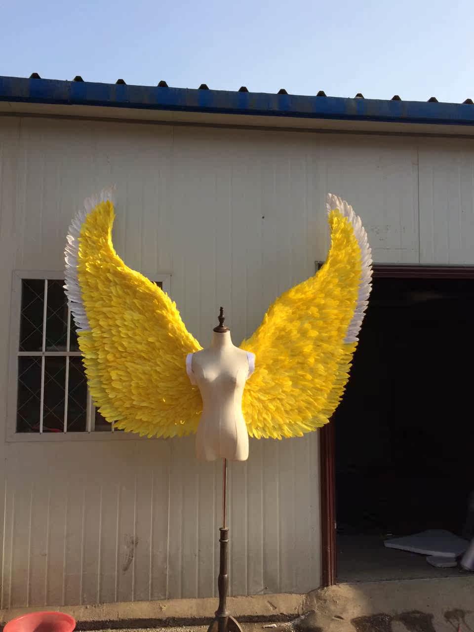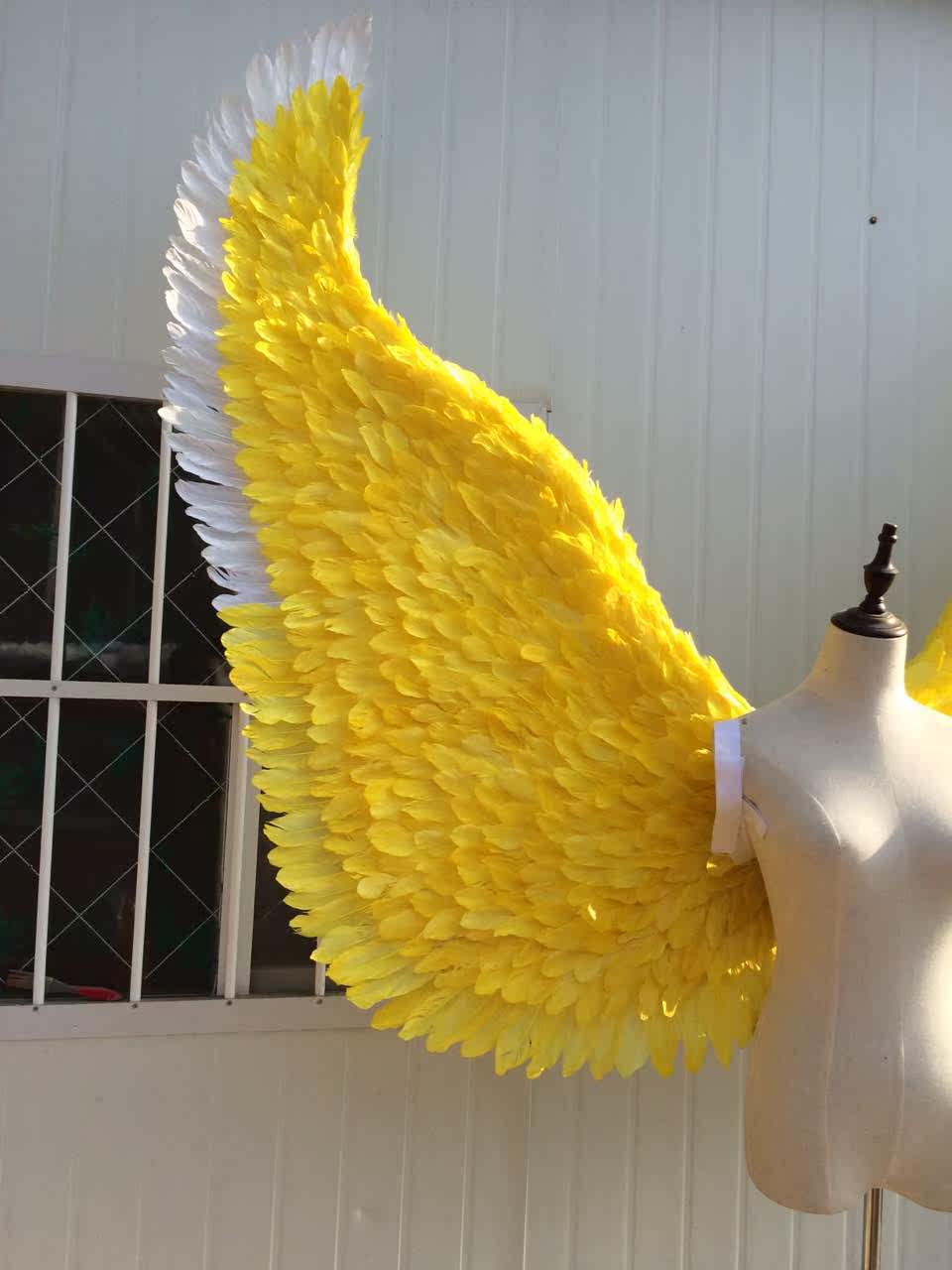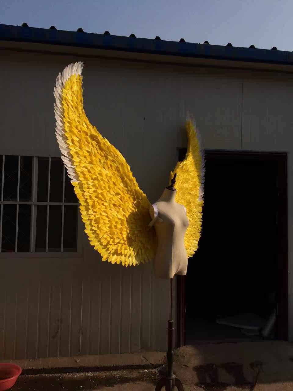 Виктория Секретное нижнее белье модель модель, перья, большой реквизит, автомобиль показывает желтые перья крылья