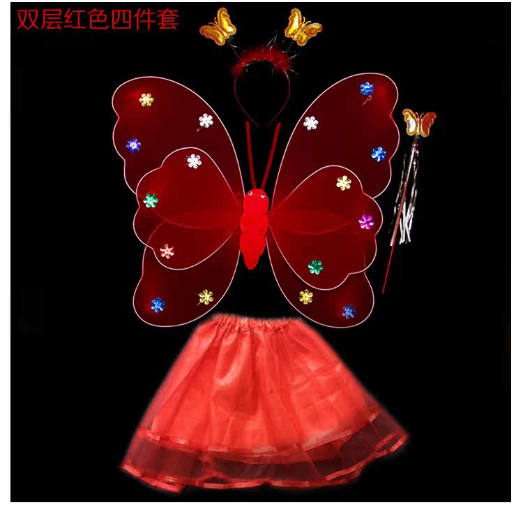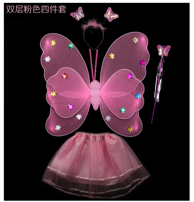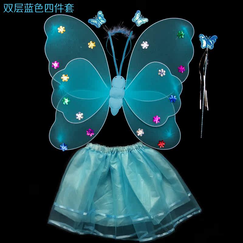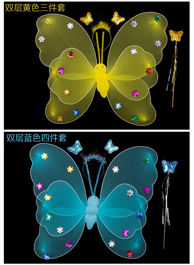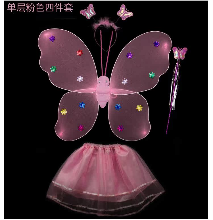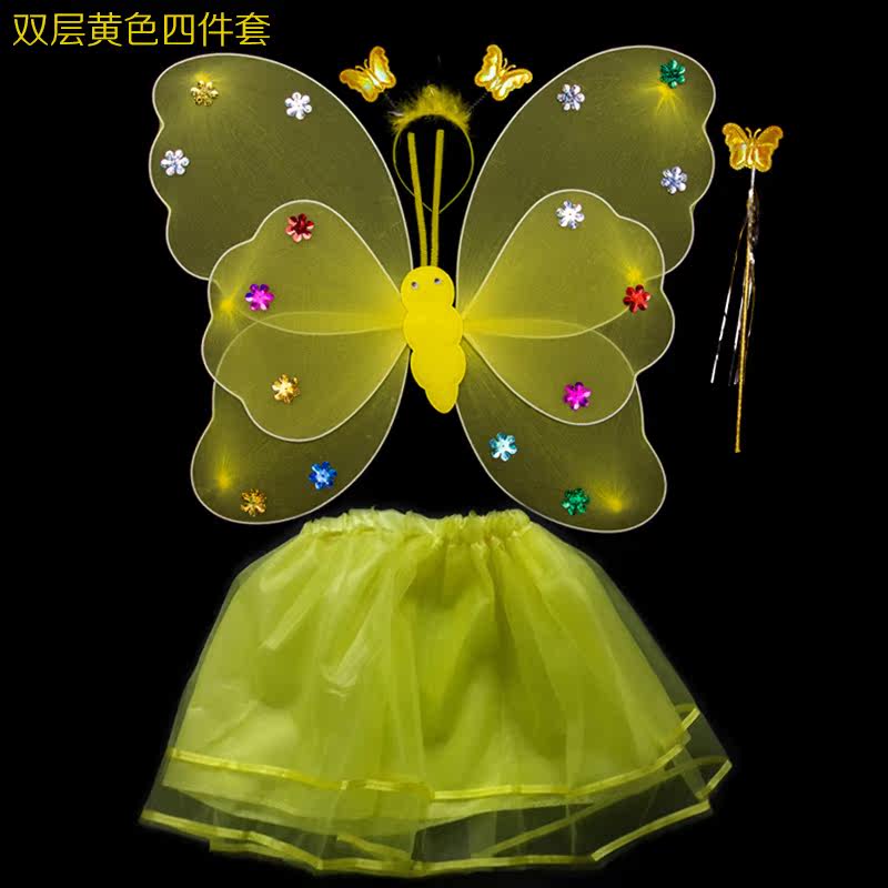 Детские костюмы для выступлений, реквизит для выступлений, костюм ангела однослойный без золотой пудры, крылья бабочки двухслойные.