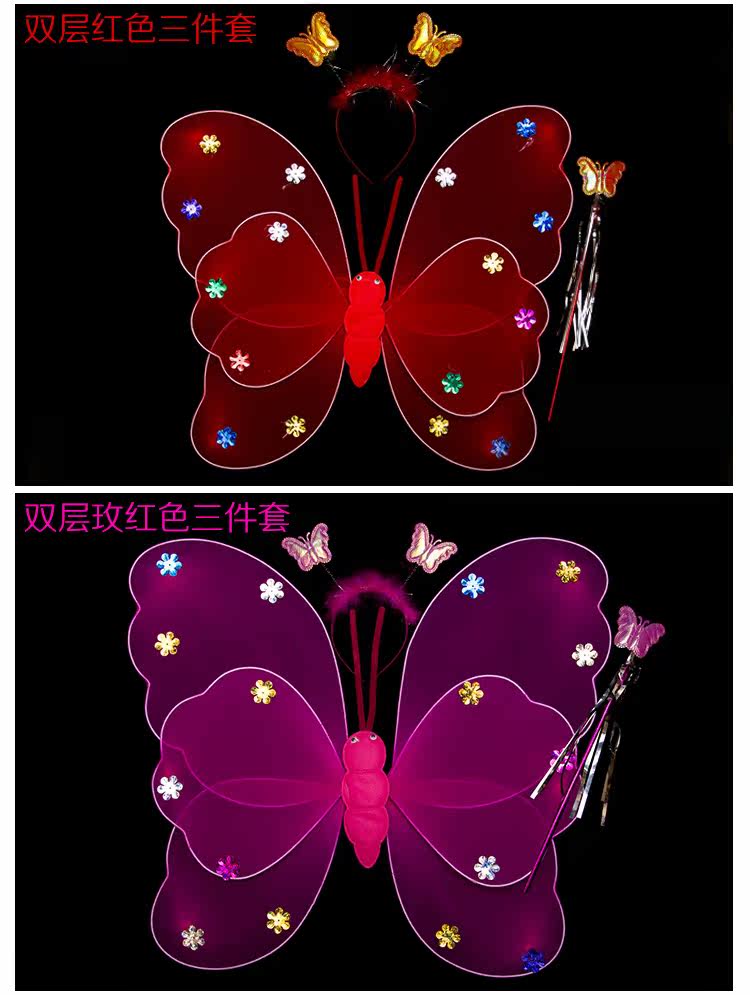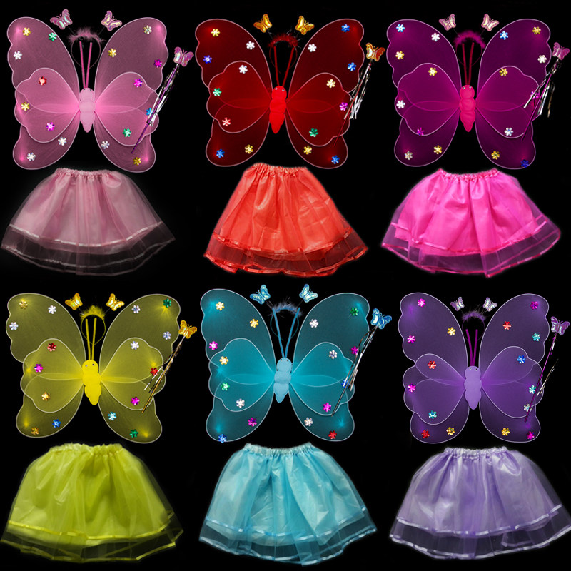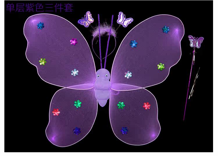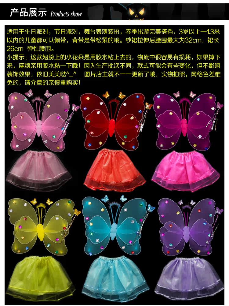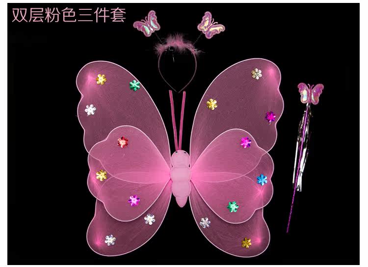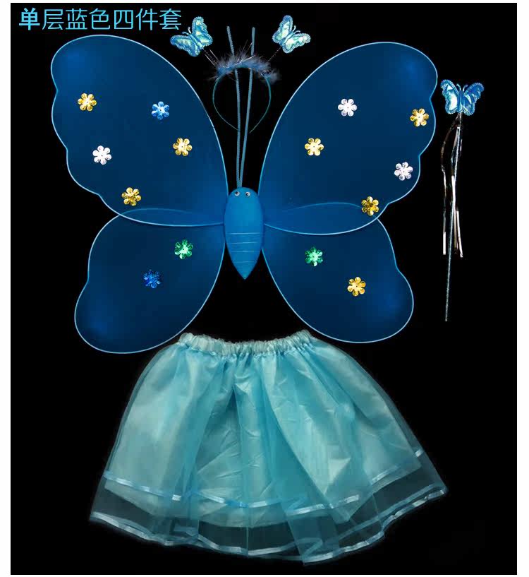 Детские костюмы для выступлений, реквизит для выступлений, костюм ангела однослойный без золотой пудры, крылья бабочки двухслойные.