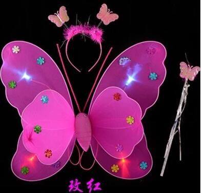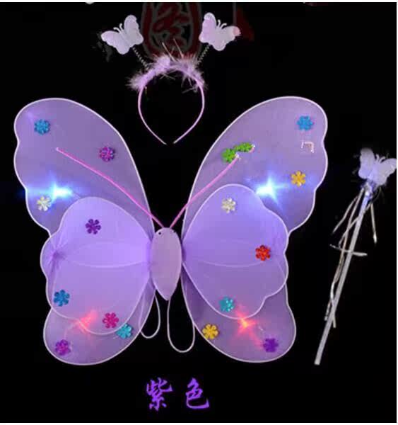 Светящиеся крылья бабочки с подсветкой для детских костюмов и реквизита, двухслойный набор из трех предметов ангела, без падающего золотого порошка