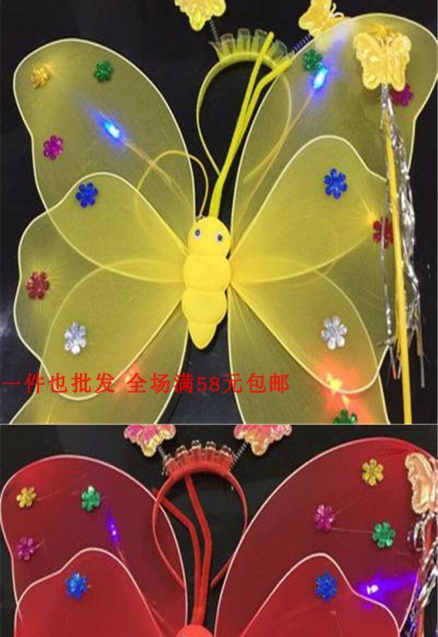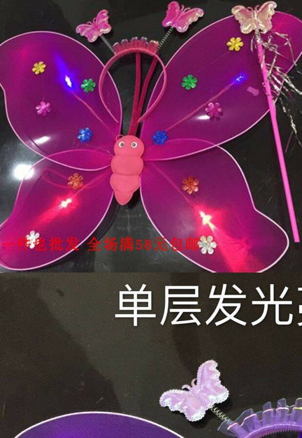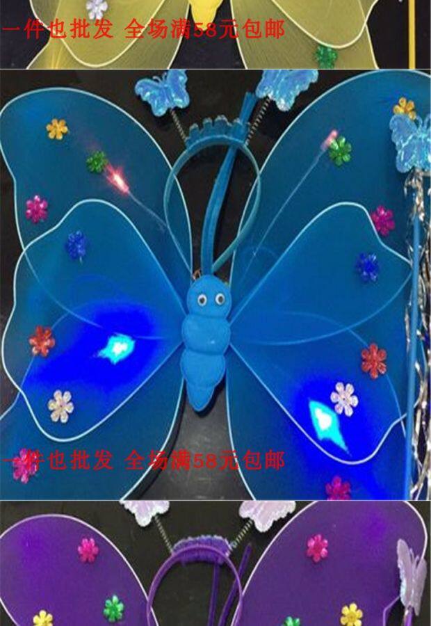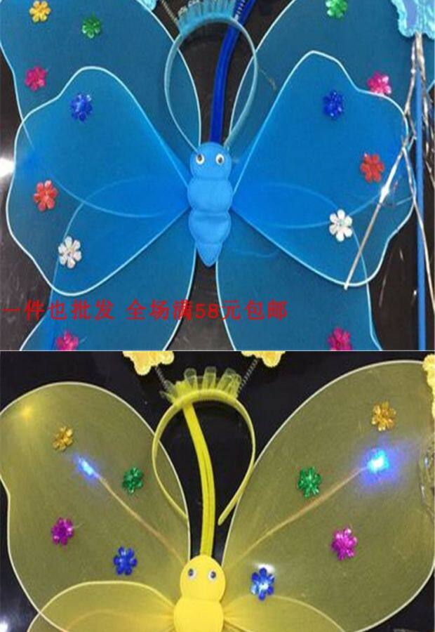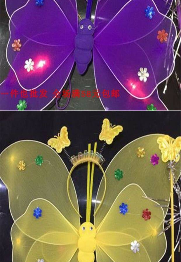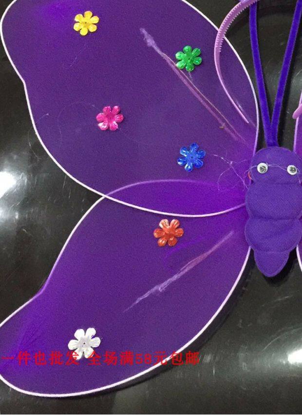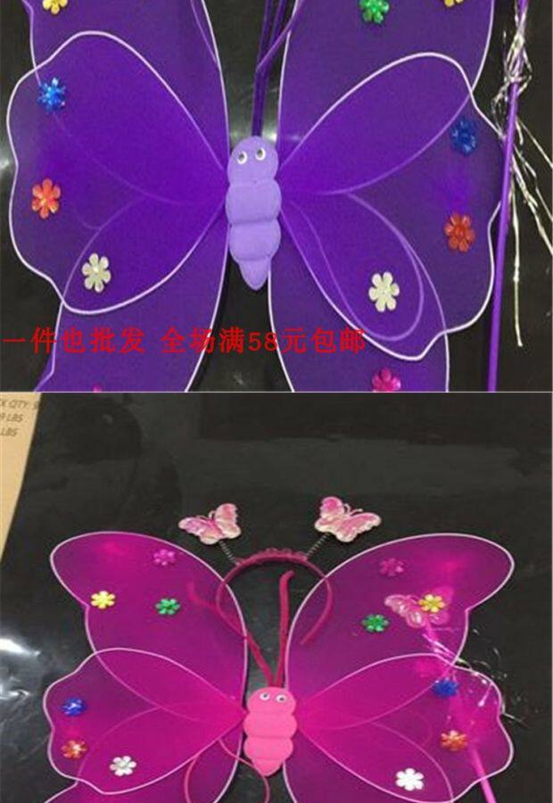 Одноразовые крылья с блестками с блестками с двойным слоем легкие крылышки бабочки с тремя танцами, чтобы одевать детскую головную пряжку
