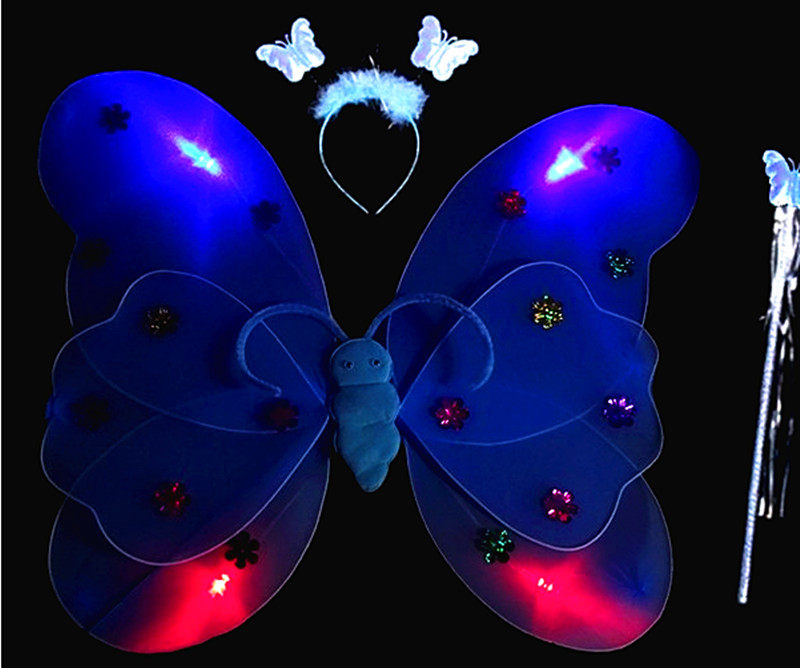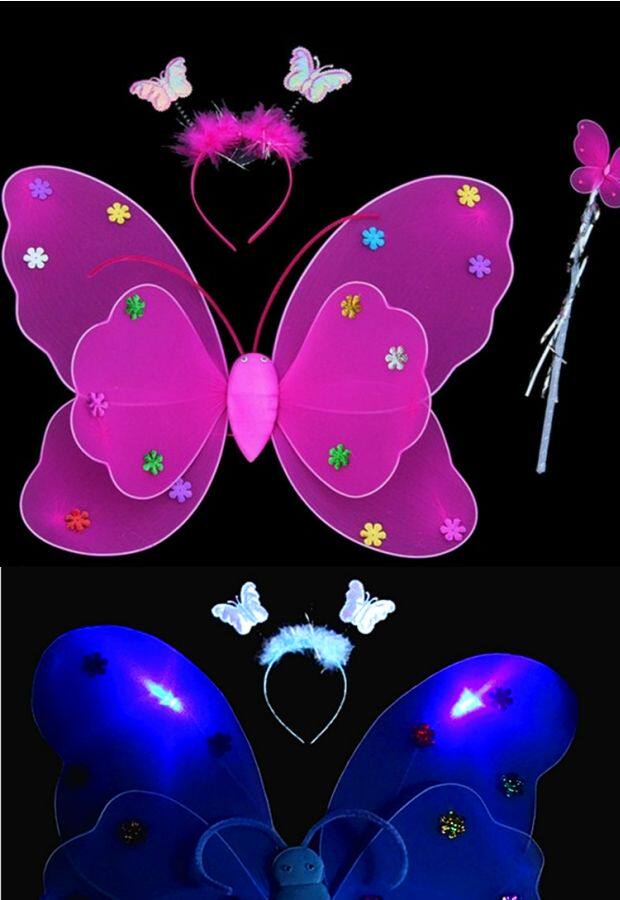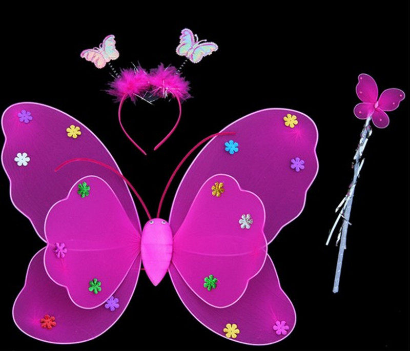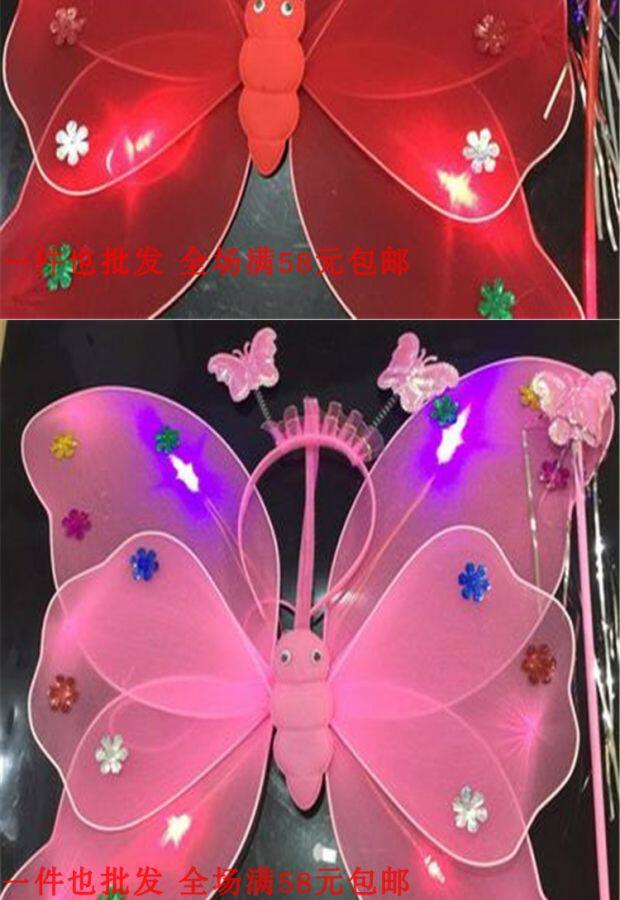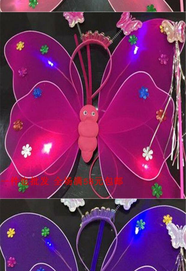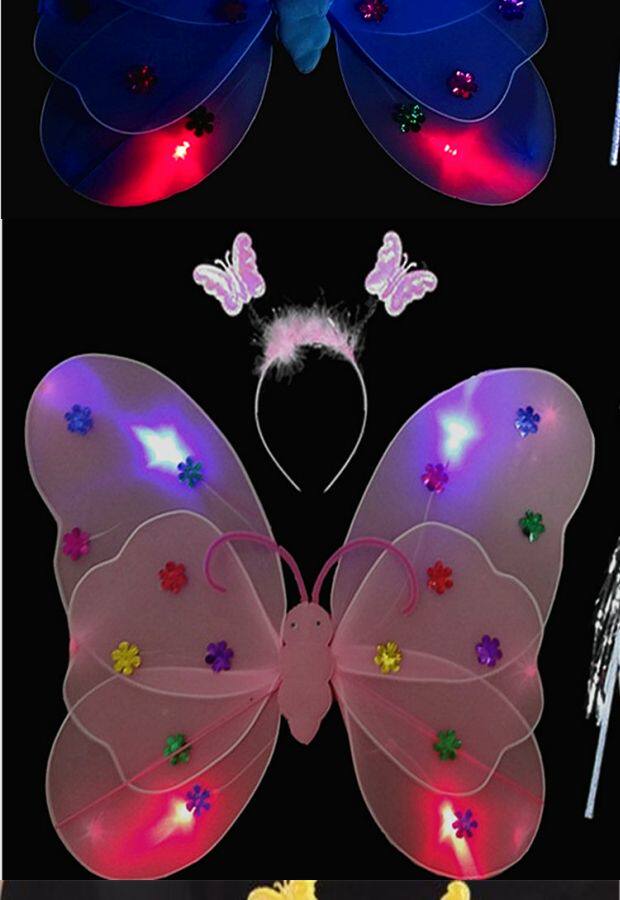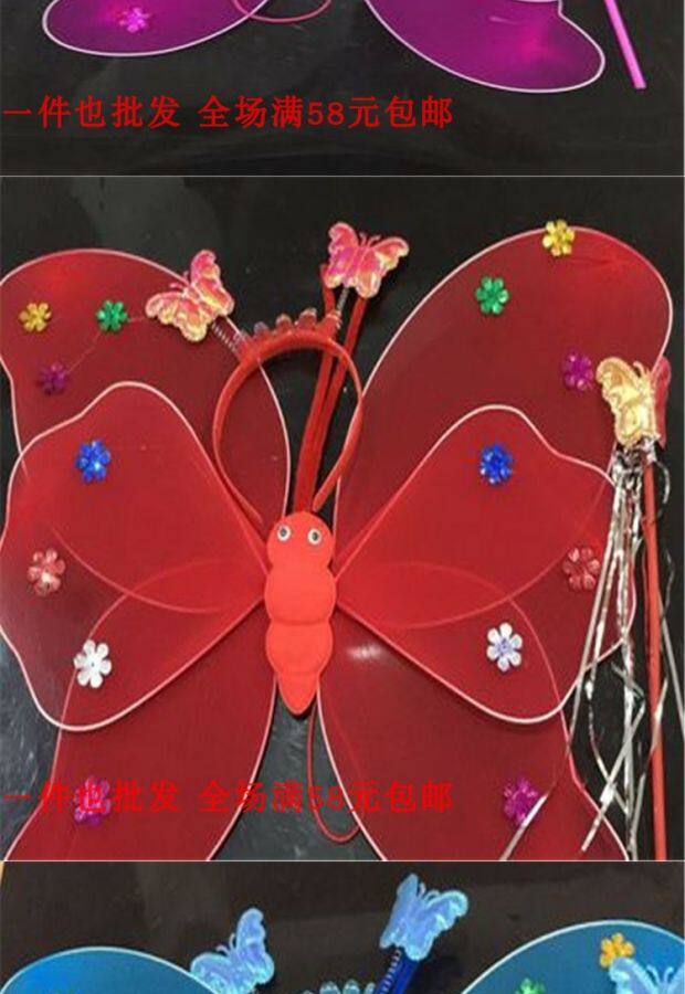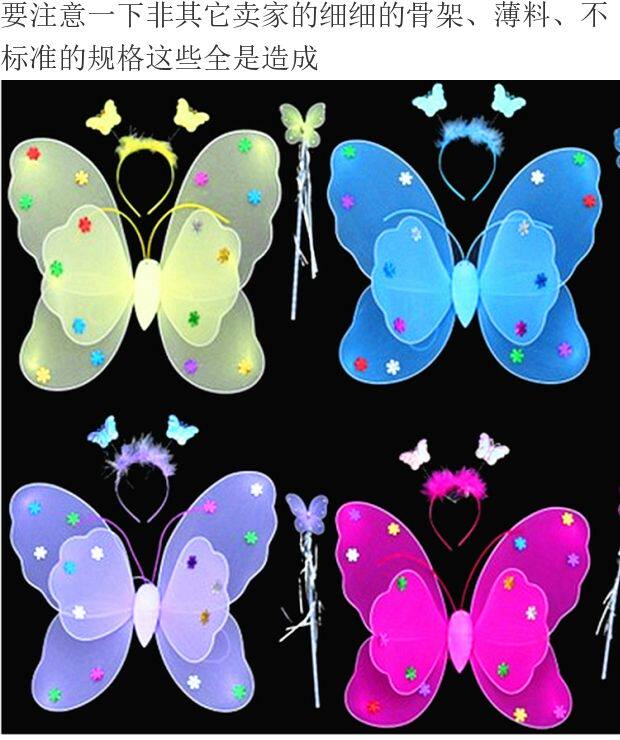 Одноразовые крылья с блестками с блестками с двойным слоем легкие крылышки бабочки с тремя танцами, чтобы одевать детскую головную пряжку