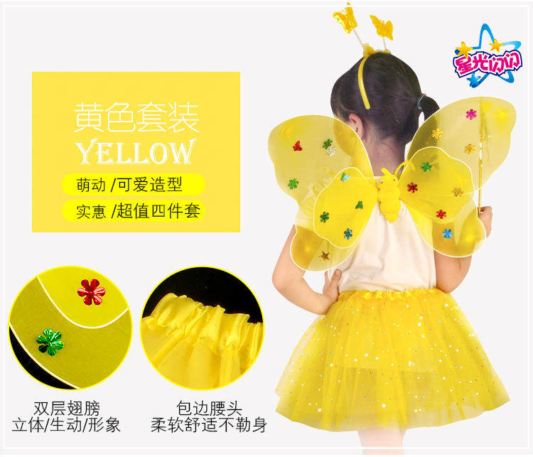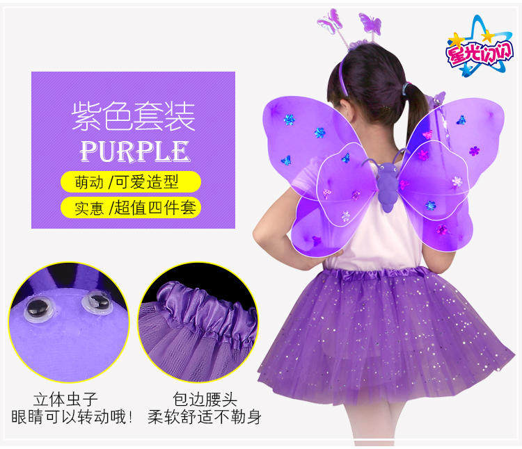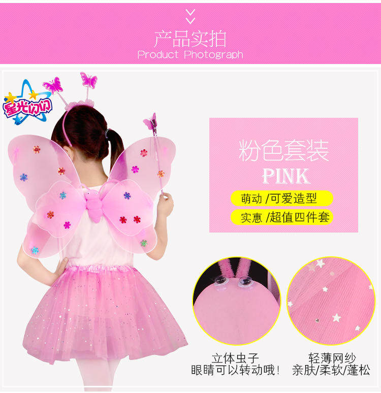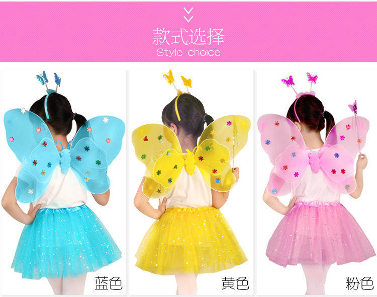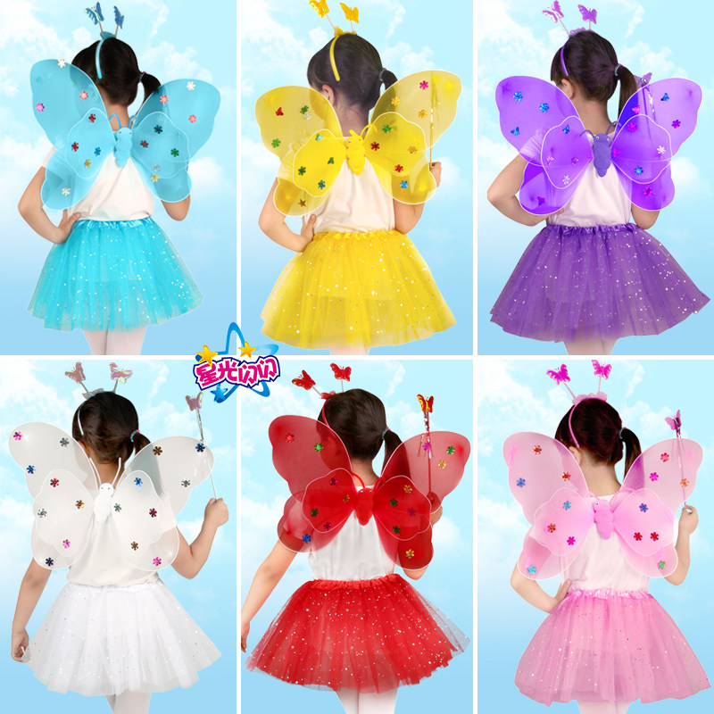 Детский комплект с бабочкой, волшебная палочка, аксессуар для волос, игрушка, 3 предмета