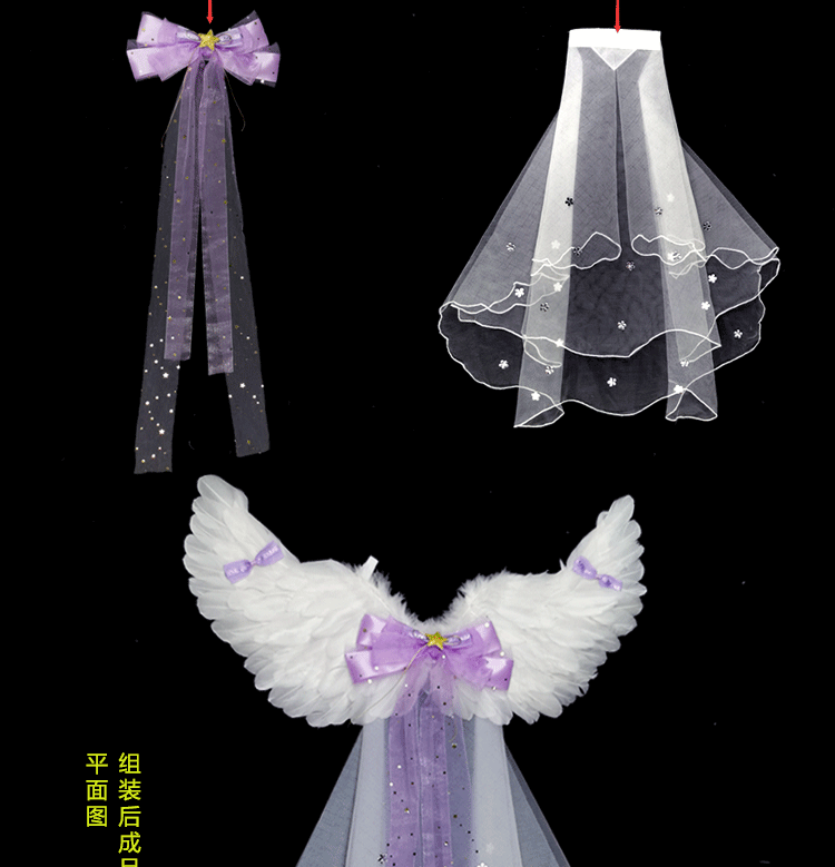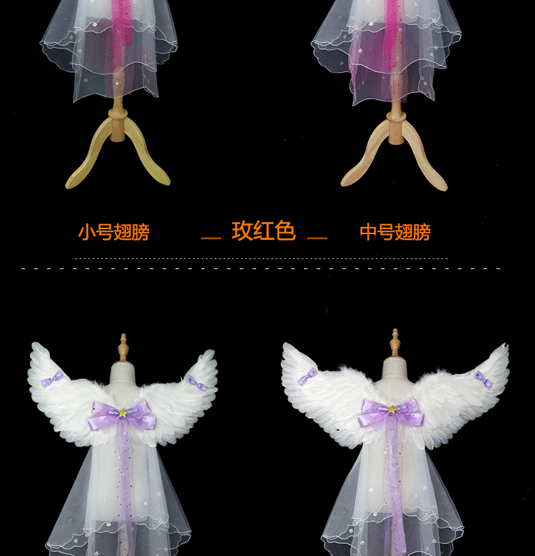 - Средние крылья+марля+лук+кольцо ангела+пряжка для кольца+палка Rose Red