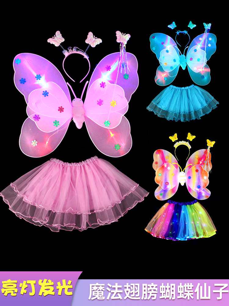 Украшение на спину для маленькой девочки, светящаяся детская игрушка, волшебная палочка, подарок для девочки, реквизит для выступления принцессы ангела, крылья бабочки