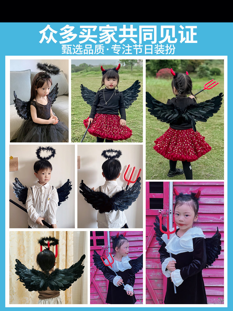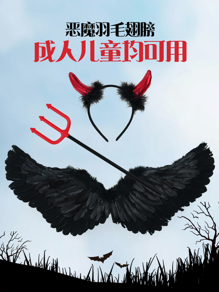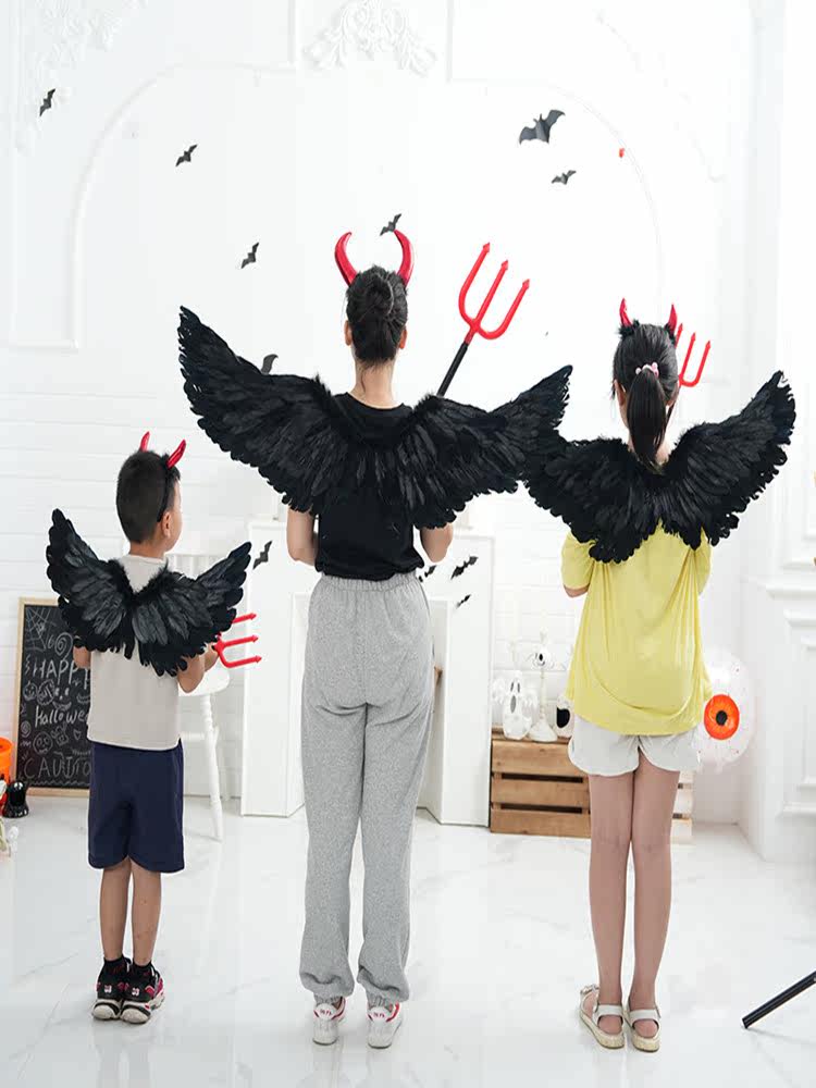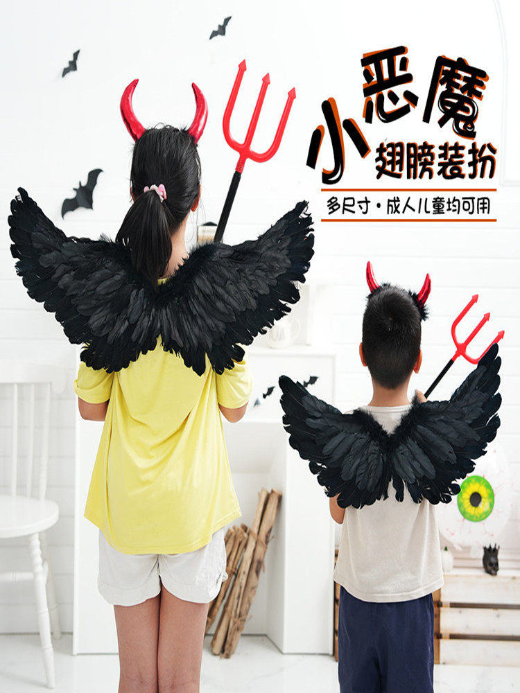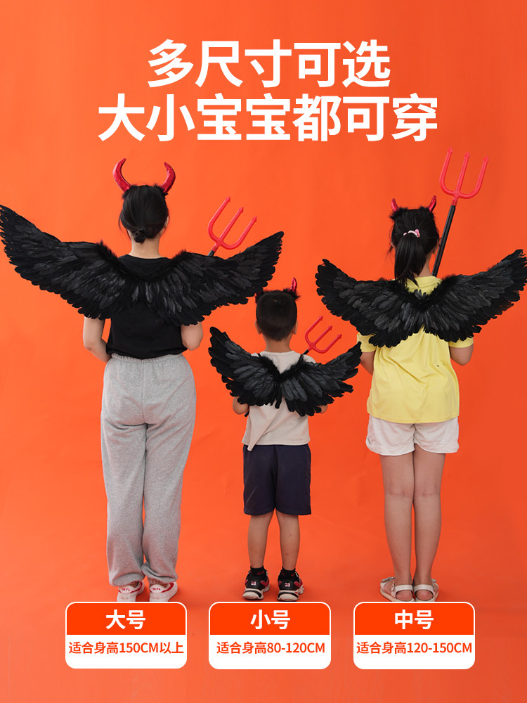 Хэллоуинский черный дьявол крыло спины отличная загадка падшего ангельского эльфа, потому что детское платье -платье -платье -платья выставка