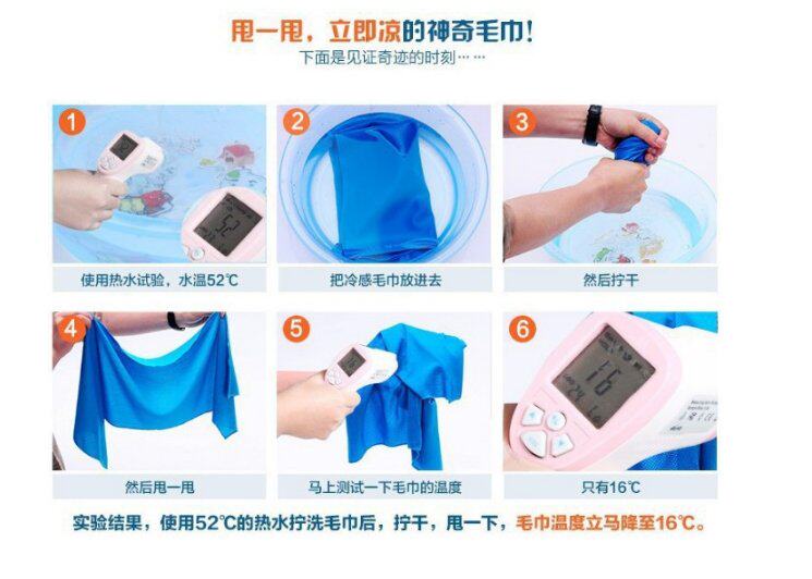 Когда жидкая вода становится водой, поглощайте тепло окружающей среды, достигайте охлаждающего эффекта, бросайте холодное полотенце и ускоряйте процесс испарения воды“&Принцип rdquo;.Ввиду характеристик материала холодных сенсорных полотенец, это может позволить пользователям путешествовать летом, пройти, чтобы предотвратить профилактику теплового удара, охлаждение, защиту глаз и уход за кожей.Холодные полотенца также являются вспомогательными инструментами для физического охлаждения, когда лихорадка, лихорадка и ожоги;