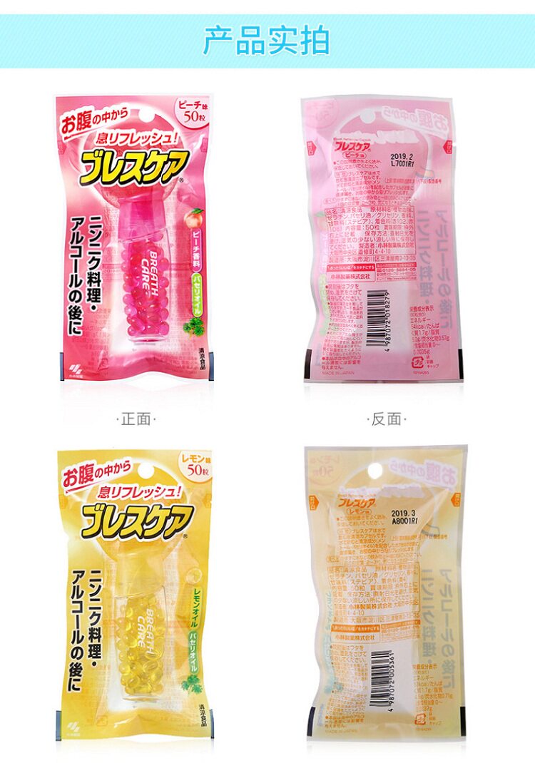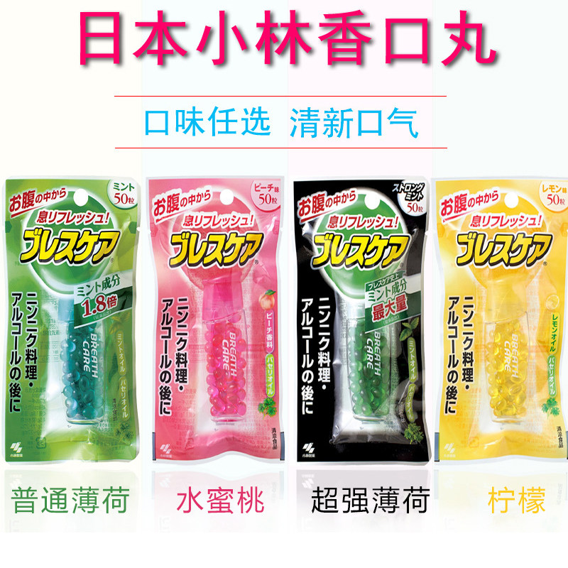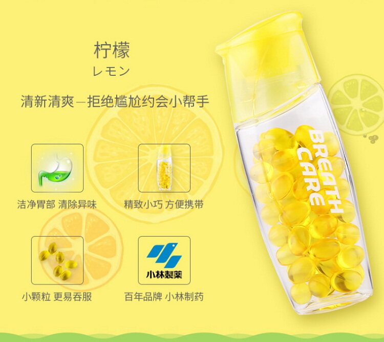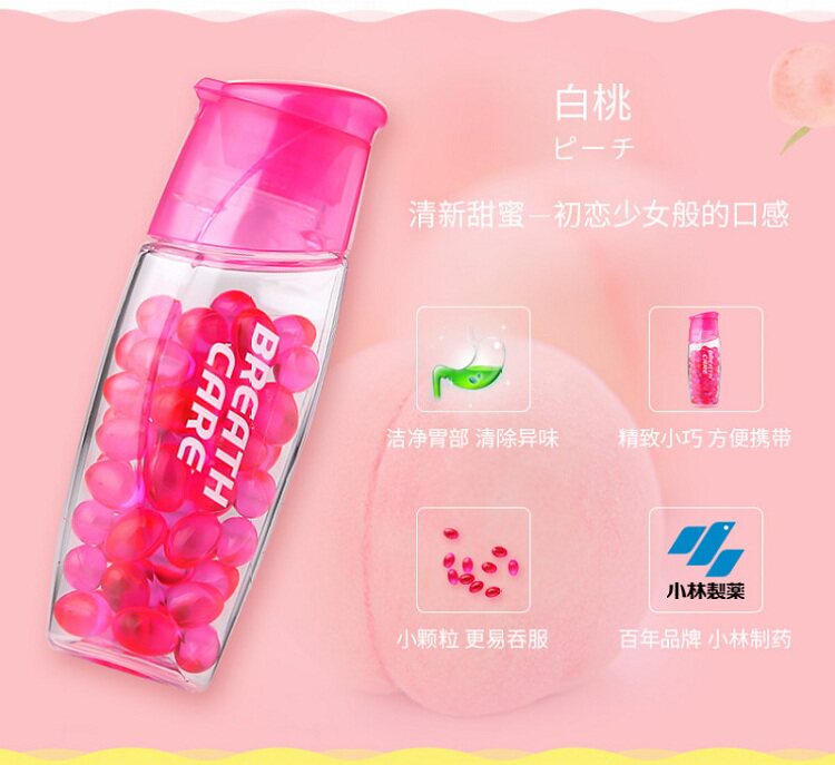 Японские фармацевтические препараты Kobayashi, свежее дыхание, свежее удаление, дезодорантная жевательная резинка 50 зерна лимонного белого персикового вкуса во рту