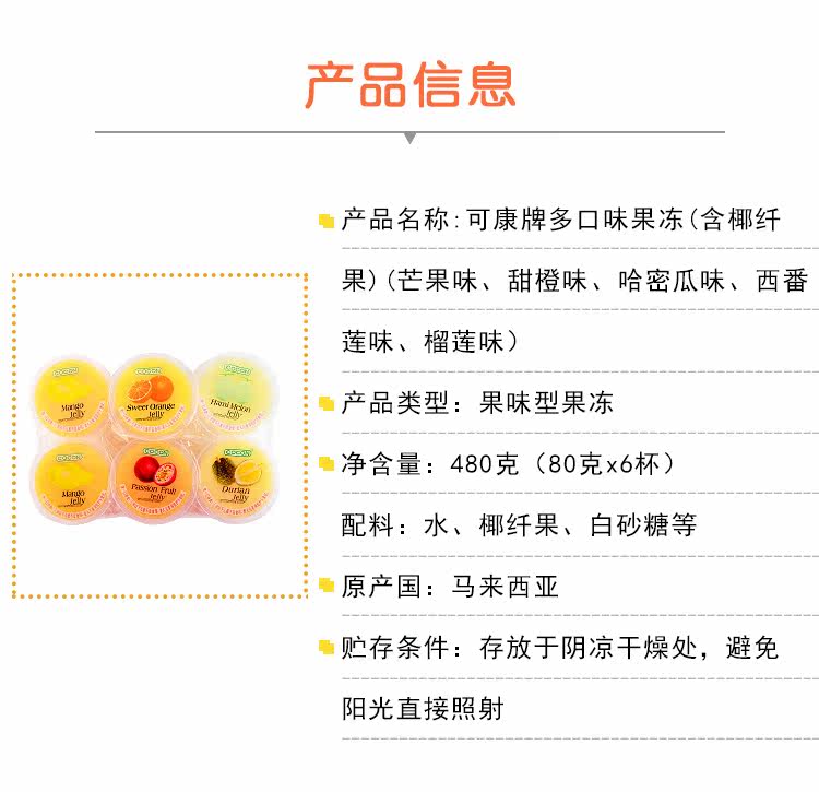 Малайзия Кандо -фруктовое желе (включая фрукты кокосового волокна) 80G*6 стаканов/группа