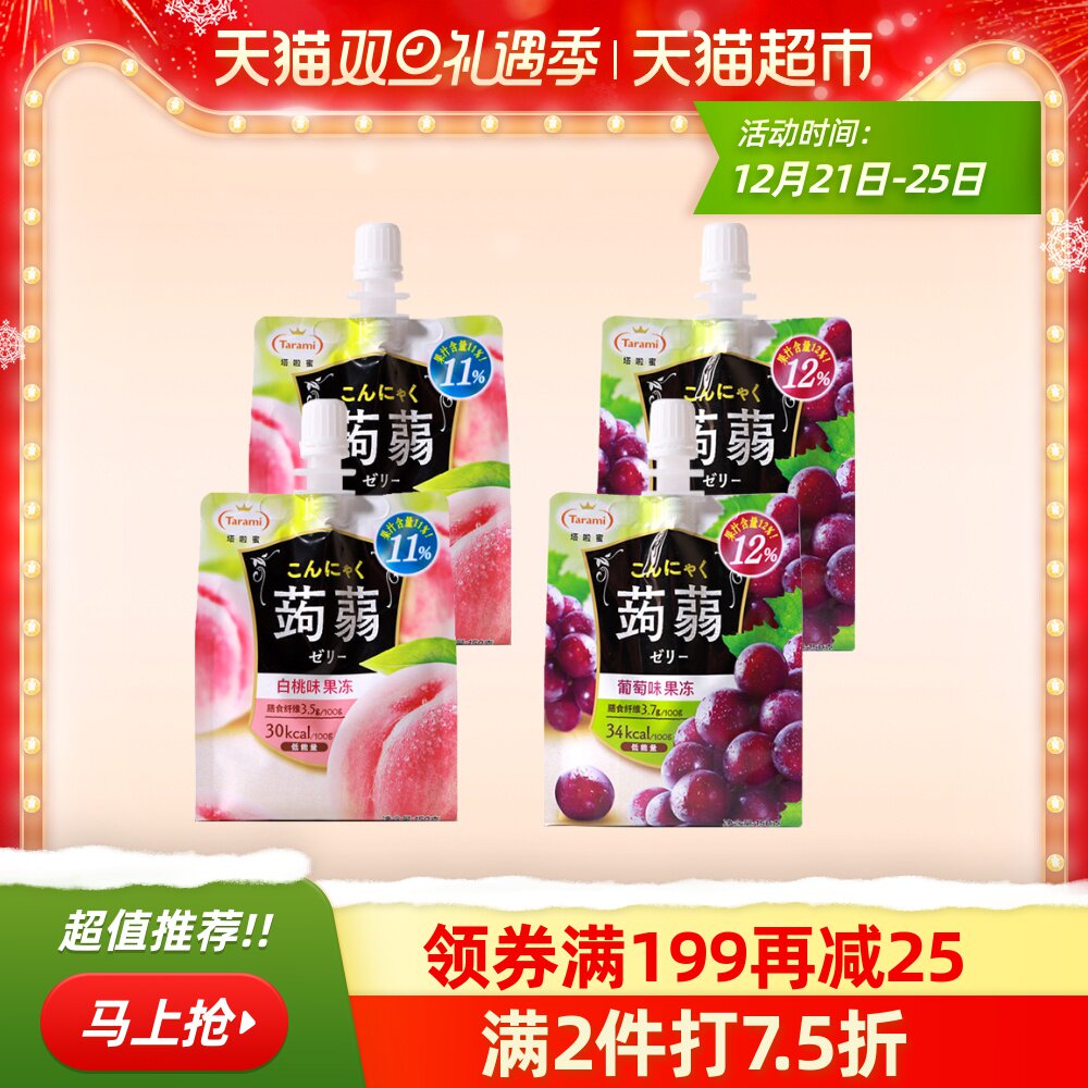 Тарами белый персиковый аромат+виноградный вкус 150 г*4 мешки с фруктовым соком Konjac Сосание фруктов заморожено на Напаин