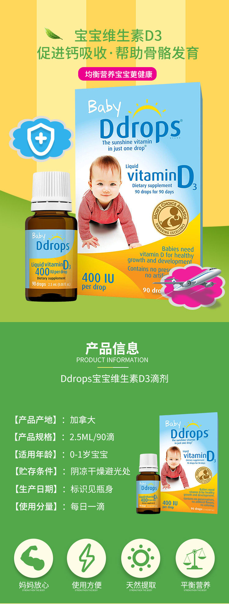 Витаминизированные капли для новорожденных для младенца, детский кальций, американская версия
