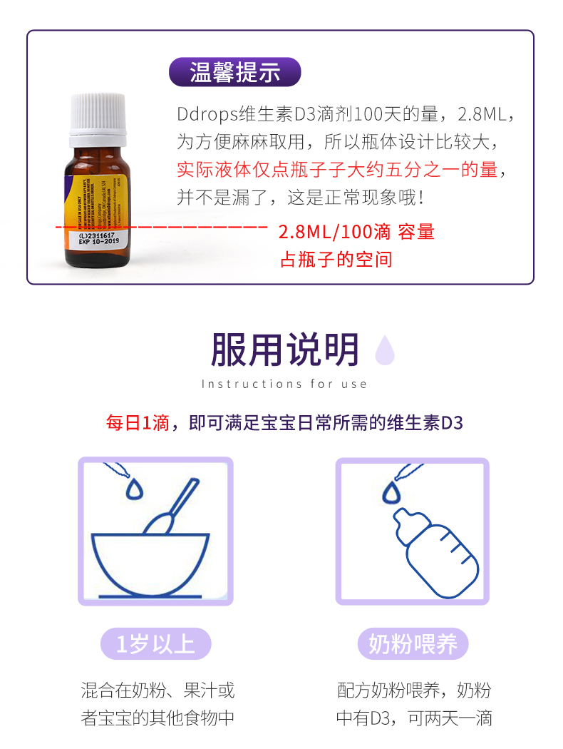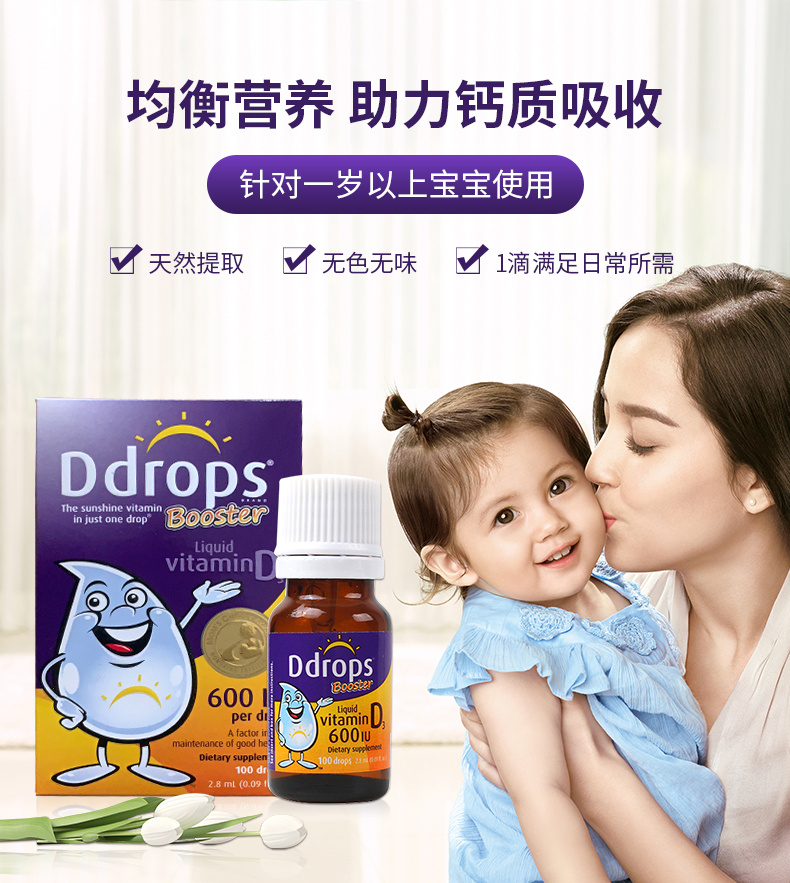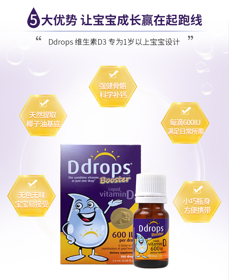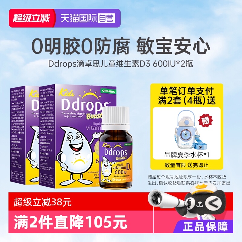 [Самоуработанные] DDROPS DI ZHUOSI VITAMIN VD3 капли детей DD Небольшие капли небольших капель для стимулирования кальция для поглощения 2,8 мл*2