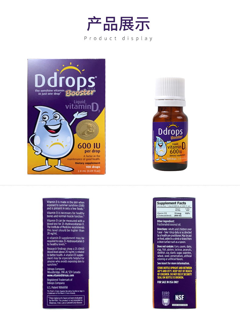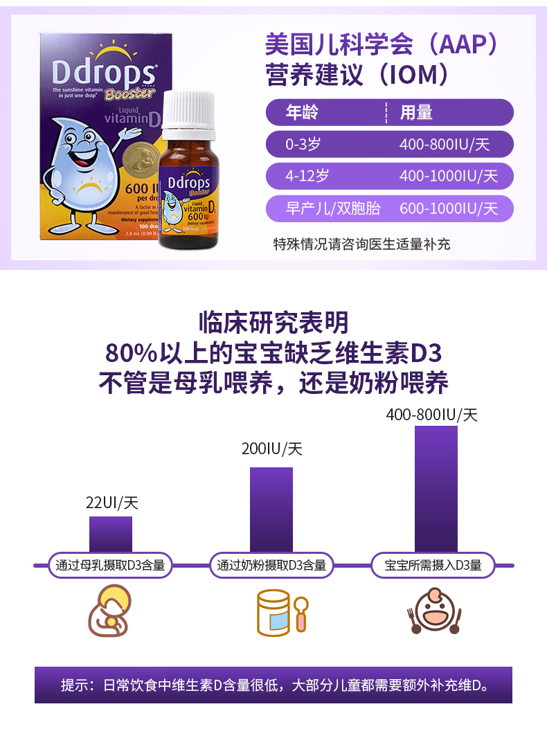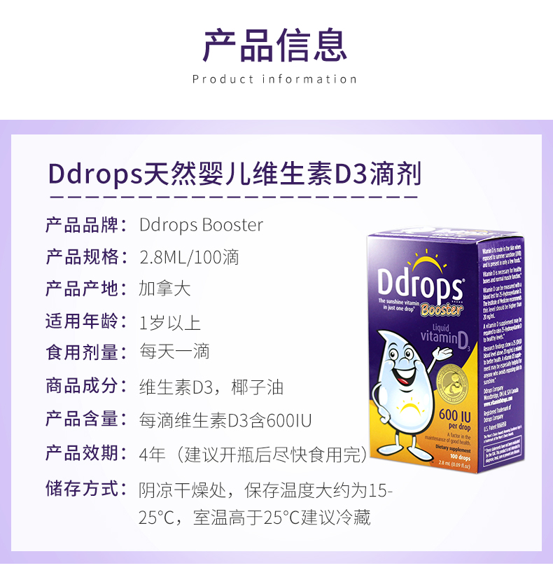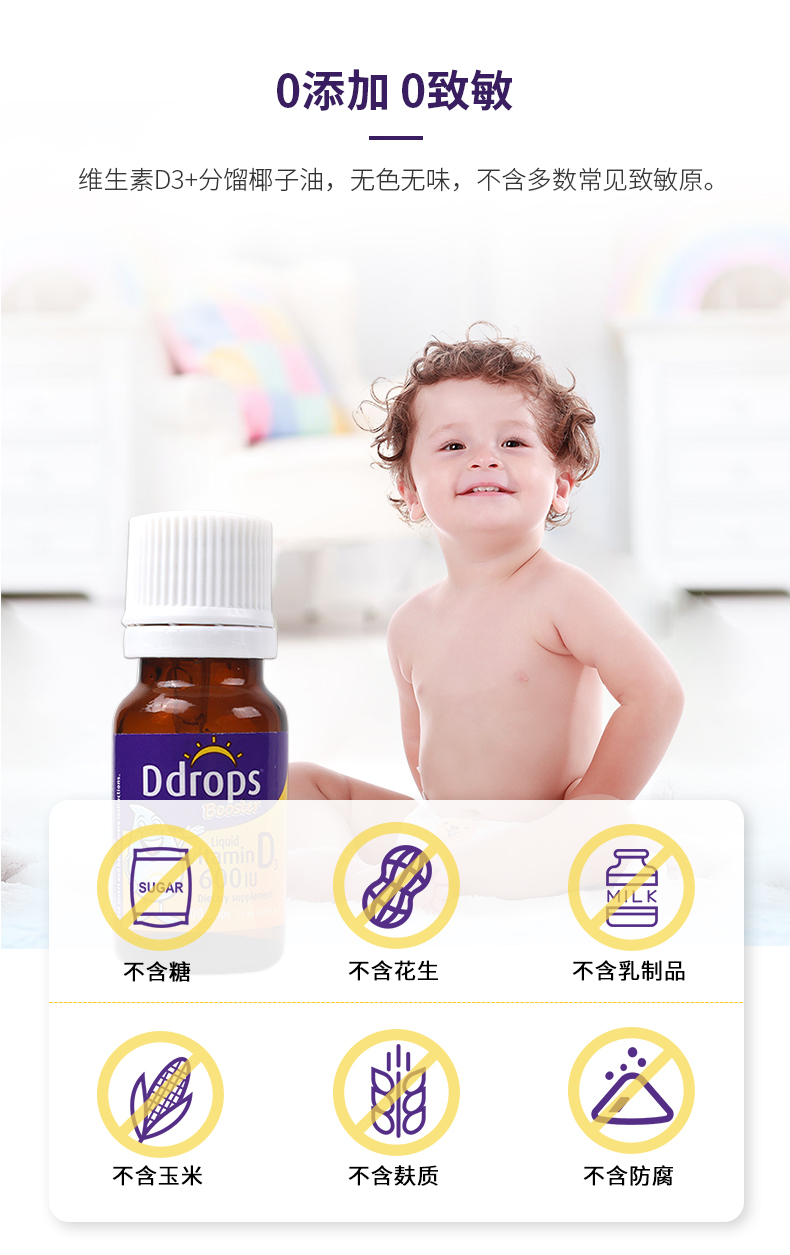 [Самоуработанные] DDROPS DI ZHUOSI VITAMIN VD3 капли детей DD Небольшие капли небольших капель для стимулирования кальция для поглощения 2,8 мл*2