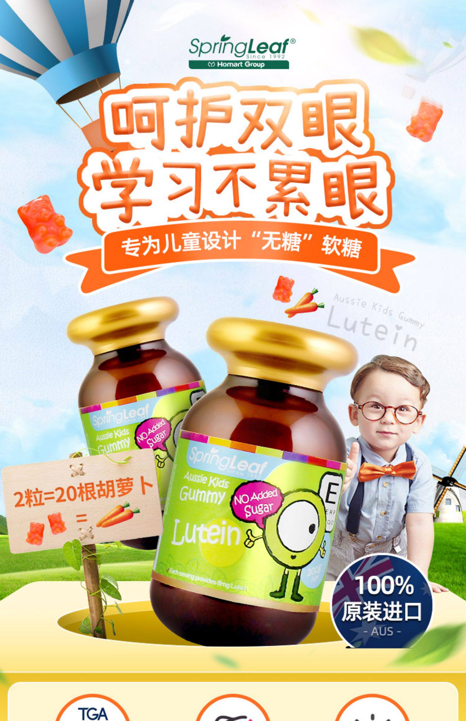Springleaf, LVFU, австралийские дети, лютеин, лютеин, Darls, студенты по защите глаз молодые зрение подлинное зрение